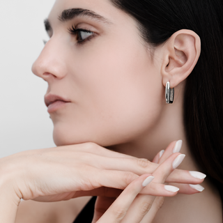 Orecchini Fabiani quadrifoglio in argento 925 rodiato con pavé di zirconi
