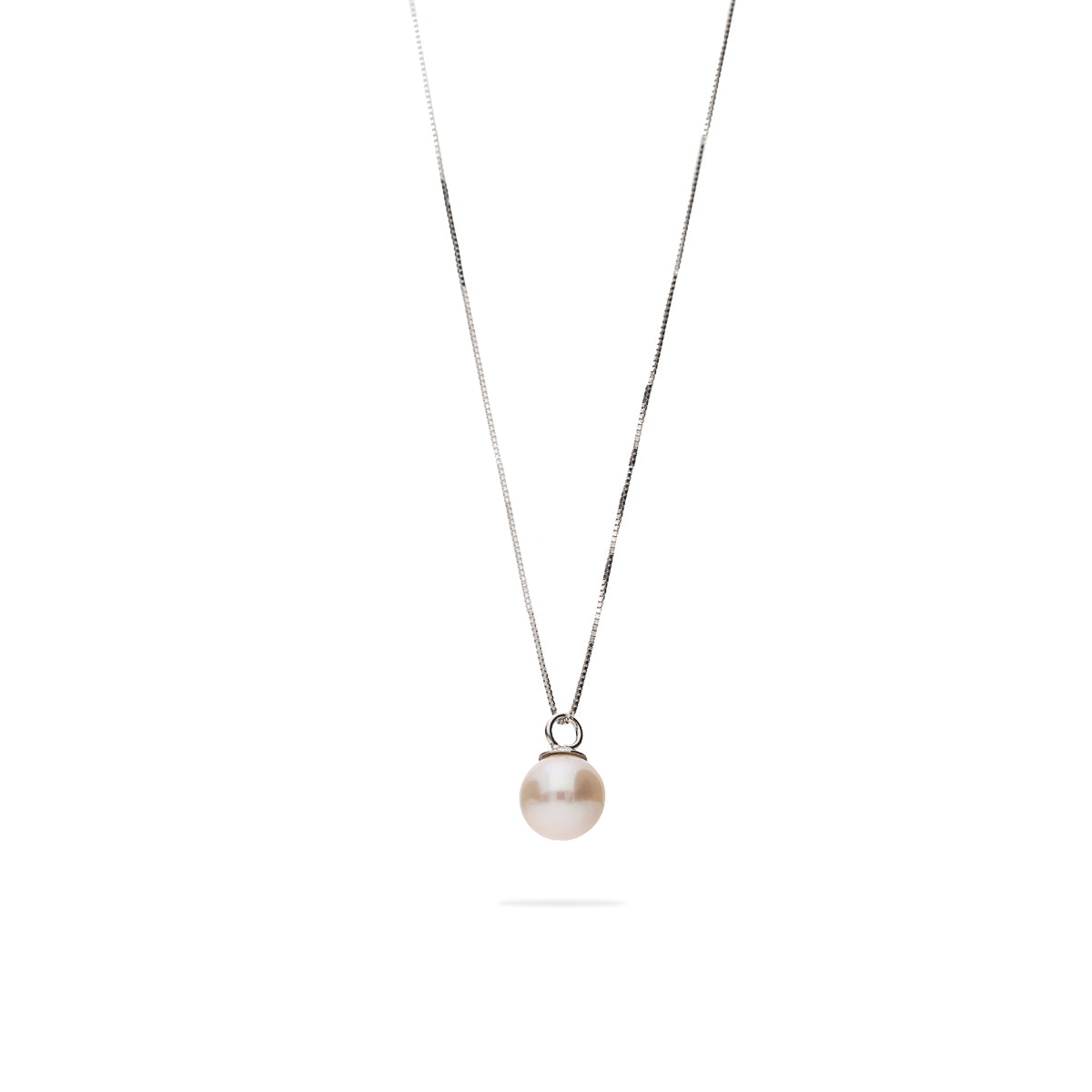Girocollo in oro 18 Kt con perla naturale di 7mm di diamatro. Lunghezza 22 cm circa. Chiusura a moschettone.