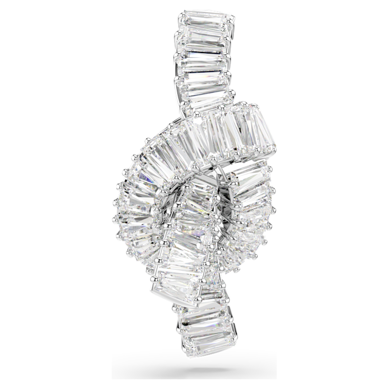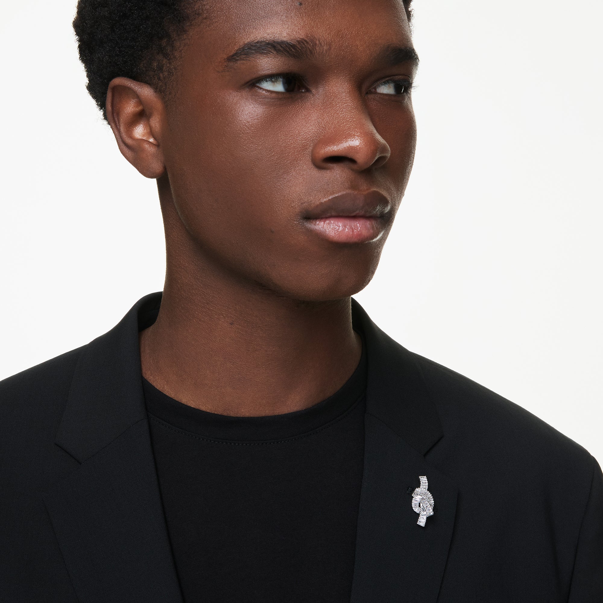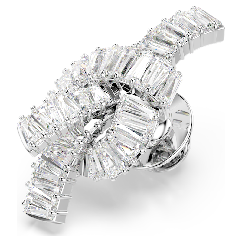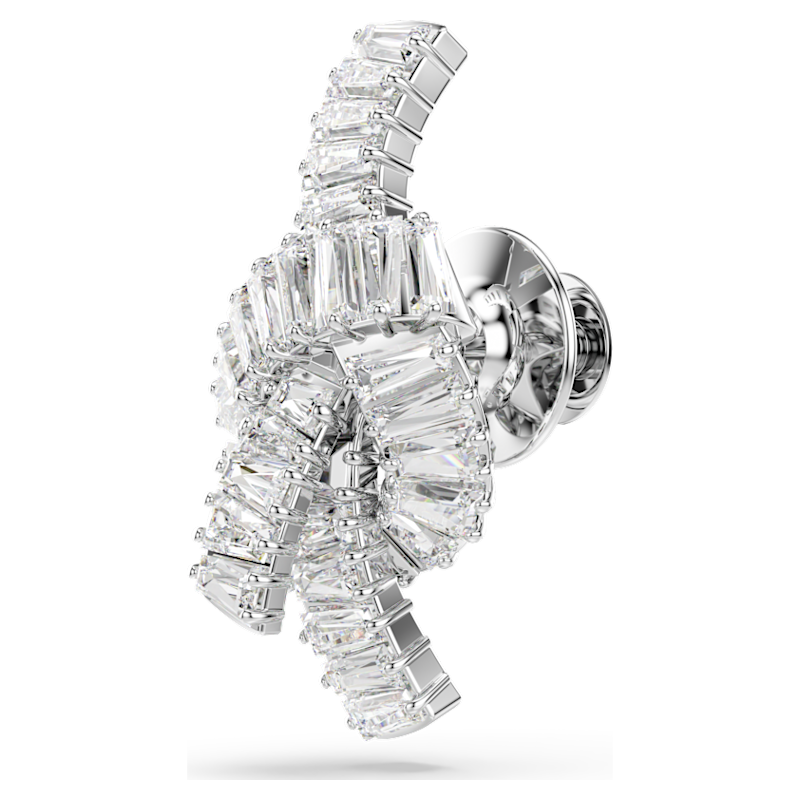 Aggiungi un tocco di luce a qualsiasi outfit con questa attraente spilla. Il motivo placcato rodio è ispirato a un nastro e presenta una decorazione annodata di Swarovski Zirconia taglio Baguette. Sensazionale da sola, o splendidamente accompagnata dalle creazioni coordinate della stessa famiglia di gioielli.