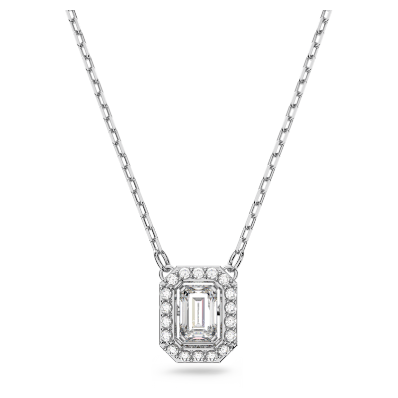 Progettata per assumere una strepitosa forma ottagonale, questa collana ciondolo diventerà uno degli accessori più utilizzati del tuo guardaroba. Una delicata catena placcata rodio trattiene una pietra taglio a Step trasparente che si muove mentre la indossi ed è incorniciata da pietre taglio brilliant più piccole. Infinitamente versatile, indossala con una t-shirt bianca per trasmettere sottilmente un messaggio, oppure portala a strati con altre collane, per un look più spettacolare. Parte della famiglia Una, la collana è firmata dal Direttore Creativo Giovanna Engelbert per la Collection I.