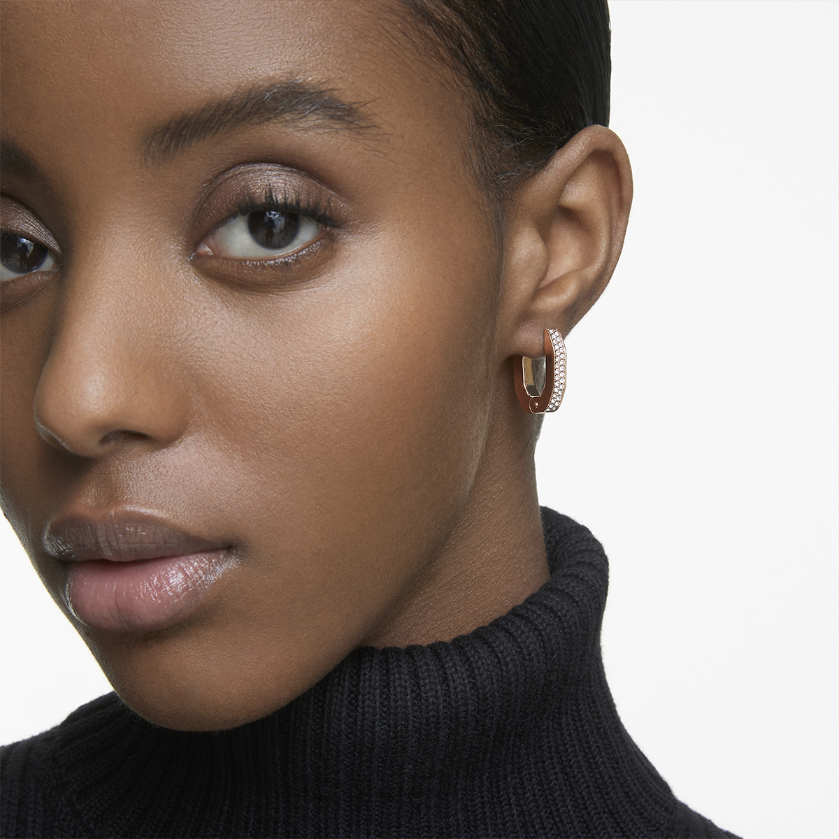 Questi orecchini a cerchio ottagonali piccoli, dai dettagli intricati e realizzati in modo audace, sono un inno alla nostra iconica tecnica pavé ed esprimono uno statement di modernità. I delicati cristalli bianchi incastonati in montature placcate in tonalità oro rosa esaltano il design di ispirazione industriale. Puoi indossarli da soli oppure sovrapposti sull’orecchio con altri gioielli della famiglia Dextera. Parte della famiglia Dextera, questi orecchini sono ideati per la Collection III.