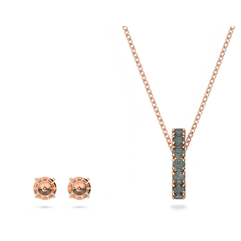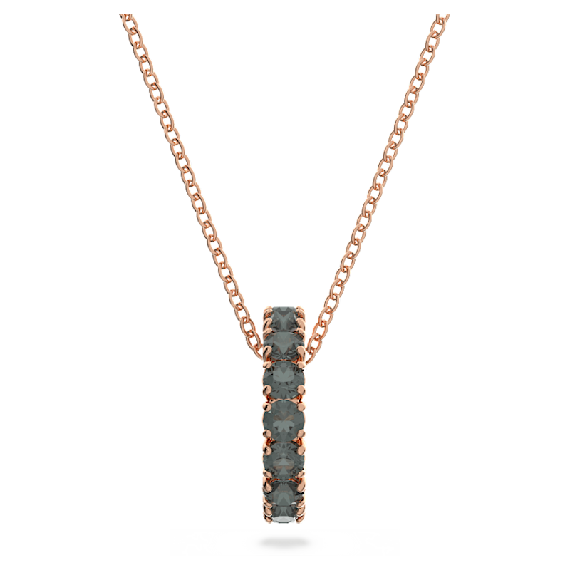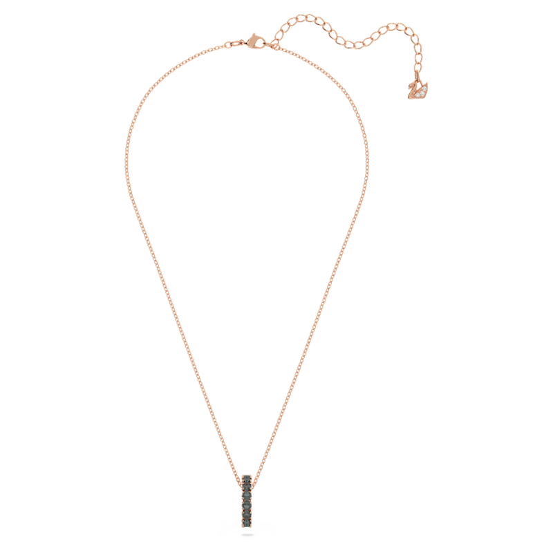 Dai energia al tuo look con questo pendente straordinario. Presenta cristalli neri, un colore spesso associato al potere e al mistero, rifiniti con una montatura placcata color oro rosa. Il regalo perfetto per chi ama questa tonalità seducente.