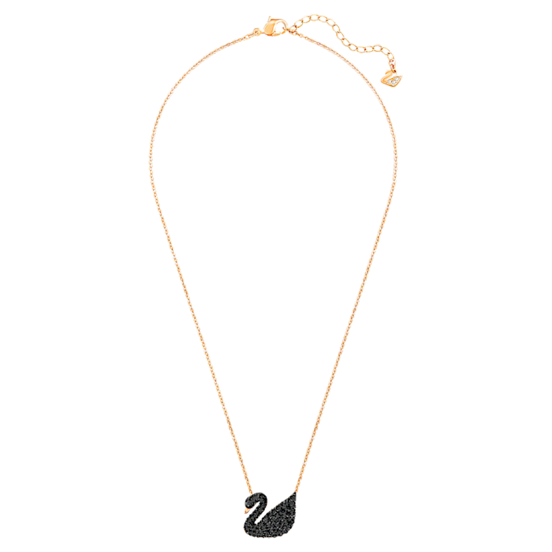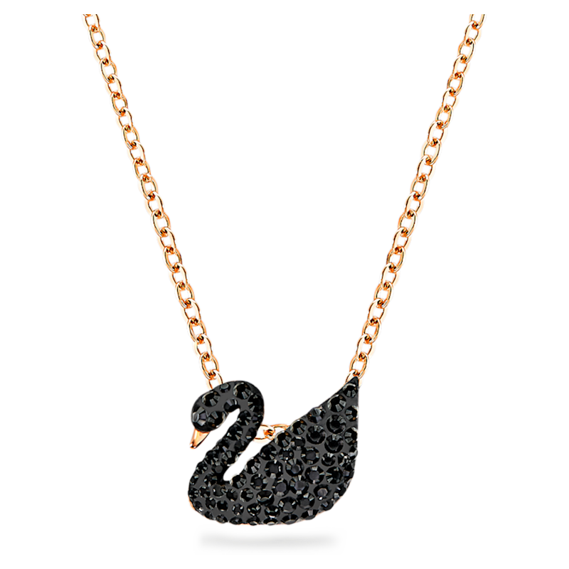 Il raffinato pendente placcato oro rosa esprime tutta la grazia del cigno riproponendolo in chiave contemporanea. La delicatezza del pavé di cristallo nero connota il gioiello di una luminosità discreta, perfetta da abbinare ad ogni mise. Il pendente misura 2 x 1,5 cm ed è abbinato ad una catenina placcata oro rosa di 38 cm.