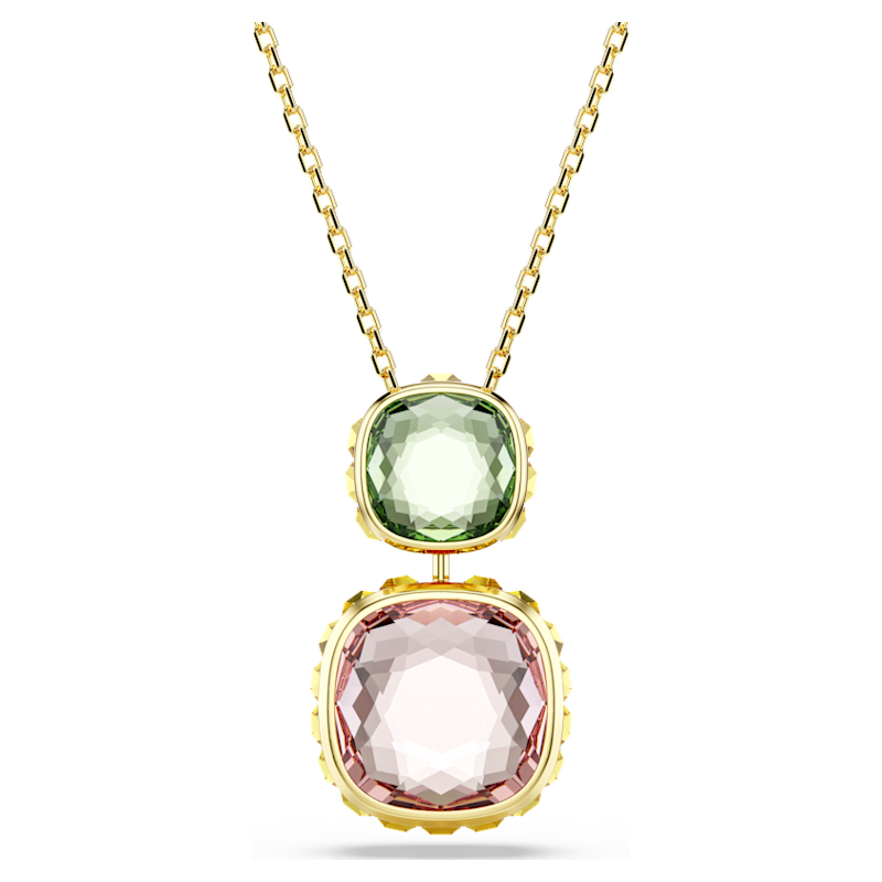 Qualunque sia il colore che ti rappresenta, questo vivace pendente Chroma Twist si adatta al tuo umore. Il design placcato in tonalità oro si collega alla catena con uno Swarovski ReCreated™ crystal verde. In basso, il design reversibile ti permette di sfoggiare uno Swarovski ReCreated™ crystal blu o un vivace cristallo rosa. Capovolgi il look per abbinarlo al tuo stile e indossalo insieme ad altri gioielli Chroma Twist per una visione di pura gioia.I gioielli Chroma Twist contengono almeno il 50% di Swarovski ReCreated™ crystals e sono la nostra prima collezione progettata pensando alla circolarità.