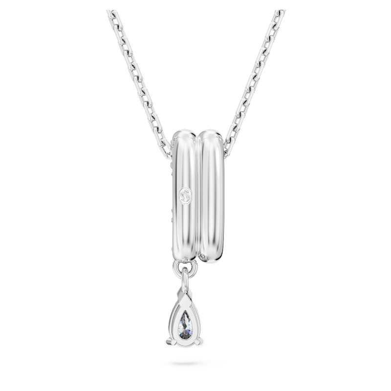 Lasciati incantare dalla squisita eleganza di questo pendente Imber placcato rodio. Il sofisticato design presenta un doppio anello con un lato impreziosito da cristalli Cry e una singola pietra con montatura a griffe che pende alla sua estremità. Per un ulteriore tocco di lusso, il gioiello si indossa appeso a un’elegante catena con uno Swarovski Zirconia che ne decora l’estremità. Un gioiello audacemente chic, che ti accompagnerà perfettamente durante il giorno e fino alla sera.