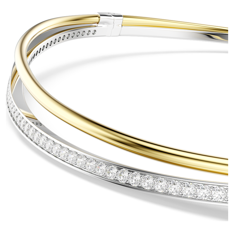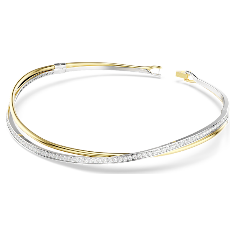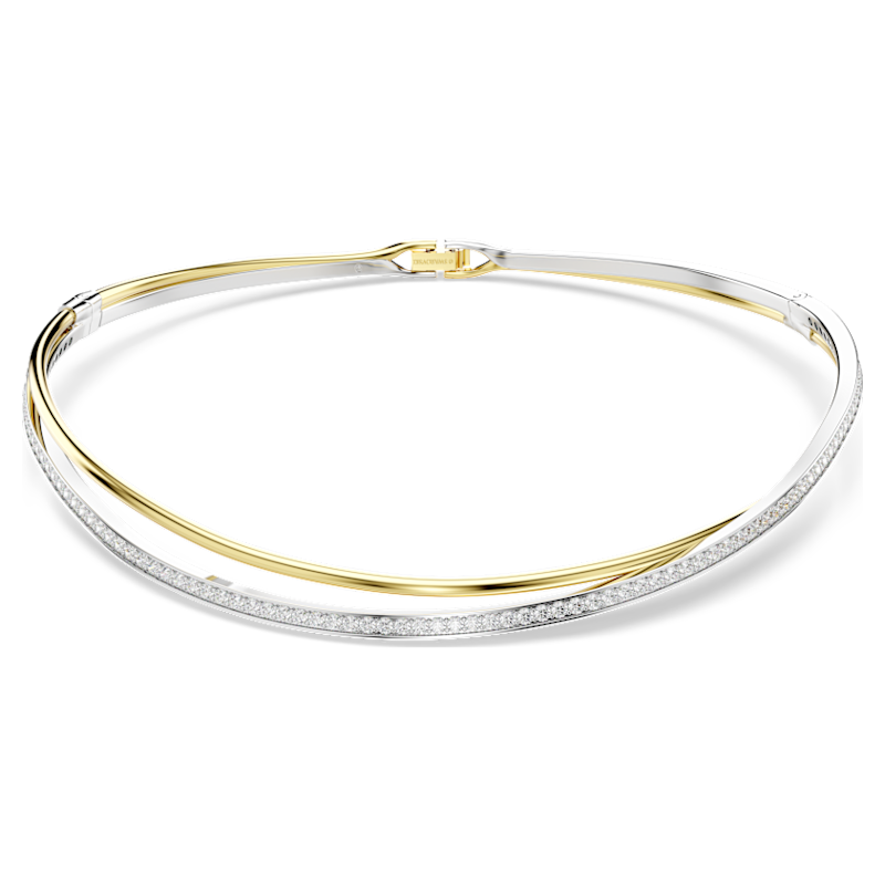 Questa raffinata collana Swarovski presenta due fasce sovrapposte in colori contrastanti e ti regalerà una doppia dose di lusso. Un filo placcato in tonalità oro si intreccia con un filo placcato rodio, impreziosito da Swarovski Zirconia taglio Round in una radiosa montatura a binario. Un’affascinante fusione di metalli misti, perfetta da abbinare alla gamma Hyperbola coordinata.