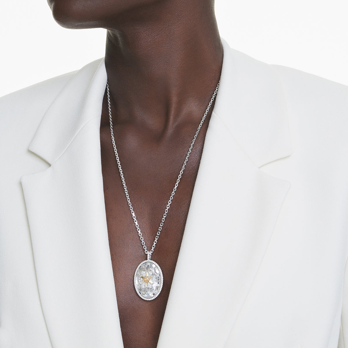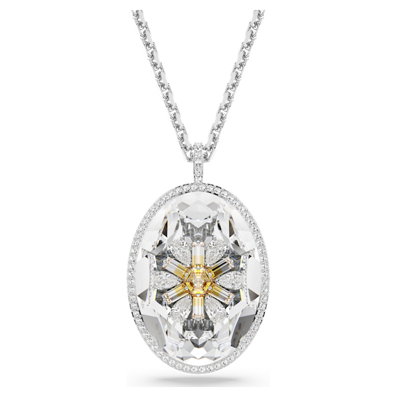 Questo straordinario gioiello Idyllia, perfetta dimostrazione di savoir-faire Swarovski, è eccezionale in ogni suo dettaglio. Indossato su una catena lunga, il pendente placcato rodio presenta un delicato micro pavé lungo il bordo, e un cristallo ovale al centro, impreziosito da un accattivante motivo floreale. Questo brillante design floreale è formato da cristalli Cry taglio Pear e Swarovski Zirconia gialli con un radioso effetto sfumato. Un gioiello meraviglioso che infonderà di luce il tuo stile.
