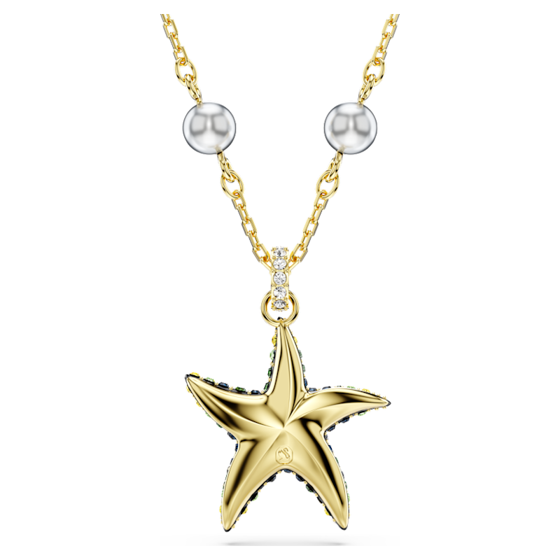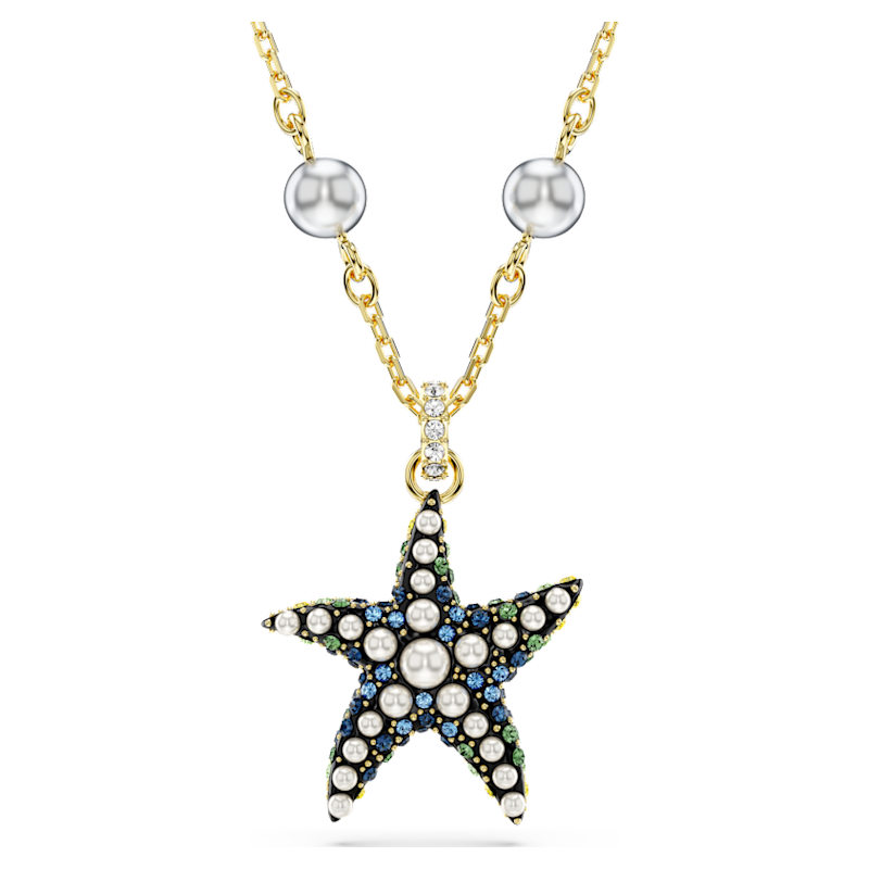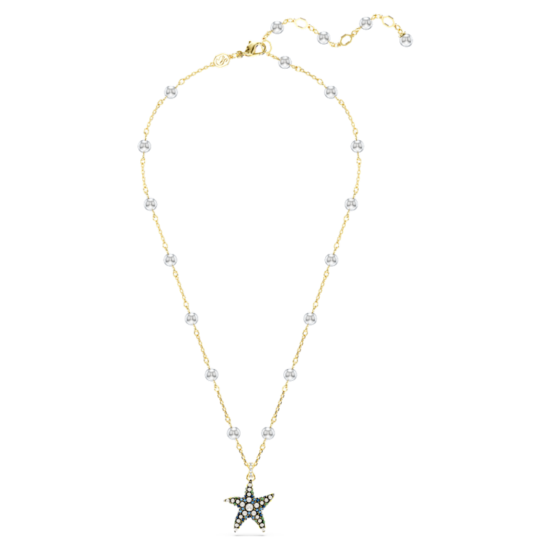 Realizzato con una profonda immaginazione, questo pendente è un tesoro imperdibile dell’oceano Idyllia. Indossato su un delicato set di catenine con Crystal Pearl grigio chiaro, questo design placcato oro presenta un motivo con stella marina, meravigliosamente decorato con una varietà di Crystal Pearl bianche e scintillanti cristalli in tonalità ispirate al mare. Un modo meraviglioso per infondere gioia al tuo stile.