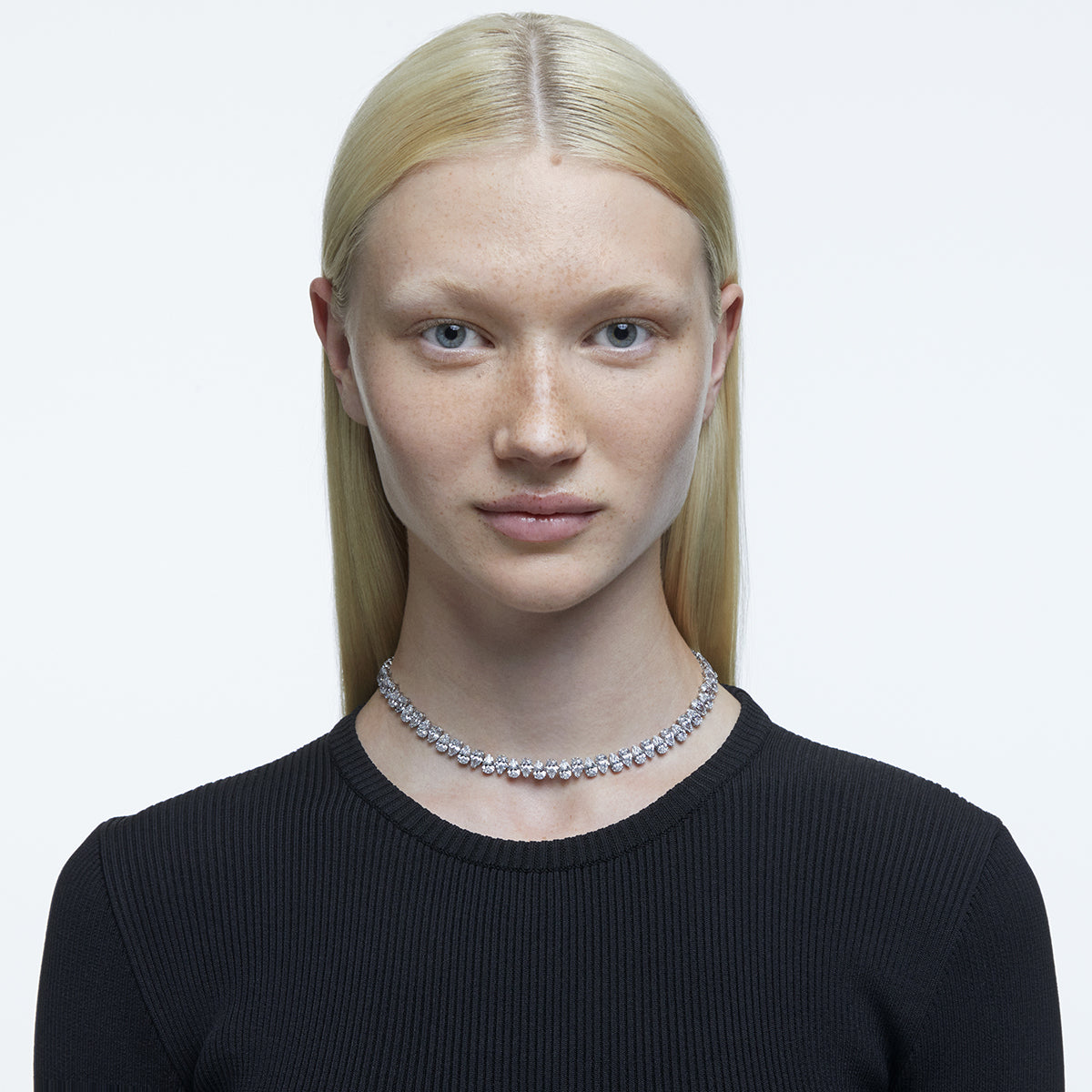 Questa collana Matrix Tennis, con i suoi tagli distintivi, conduce lo stile Tennis in una nuova ed affascinante direzione. Il design placcato rodio presenta un filo girocollo di Swarovski Zirconia trasparenti a forma di goccia. Un flusso quasi infinito di cristalli sfaccettati che conferiranno al tuo look un luminoso tocco di energia.