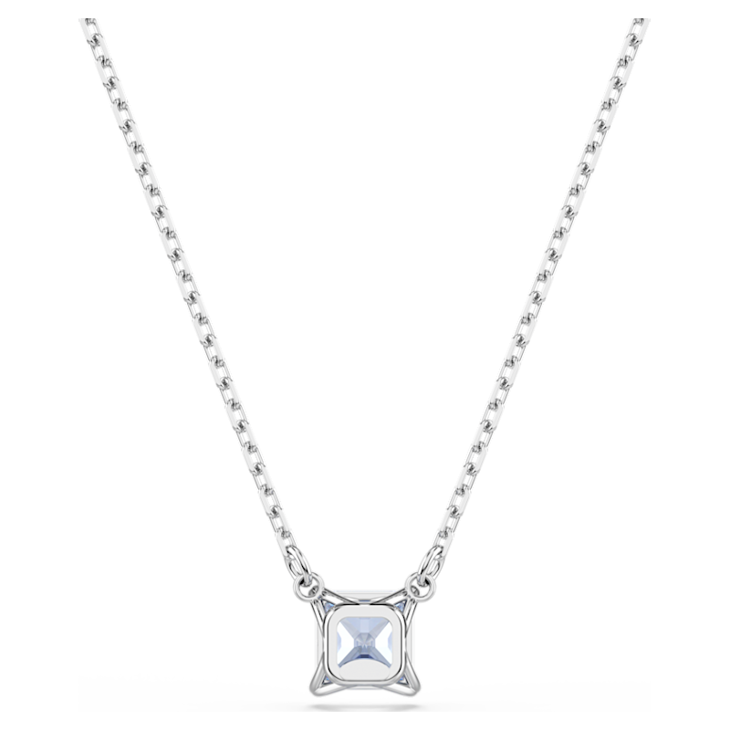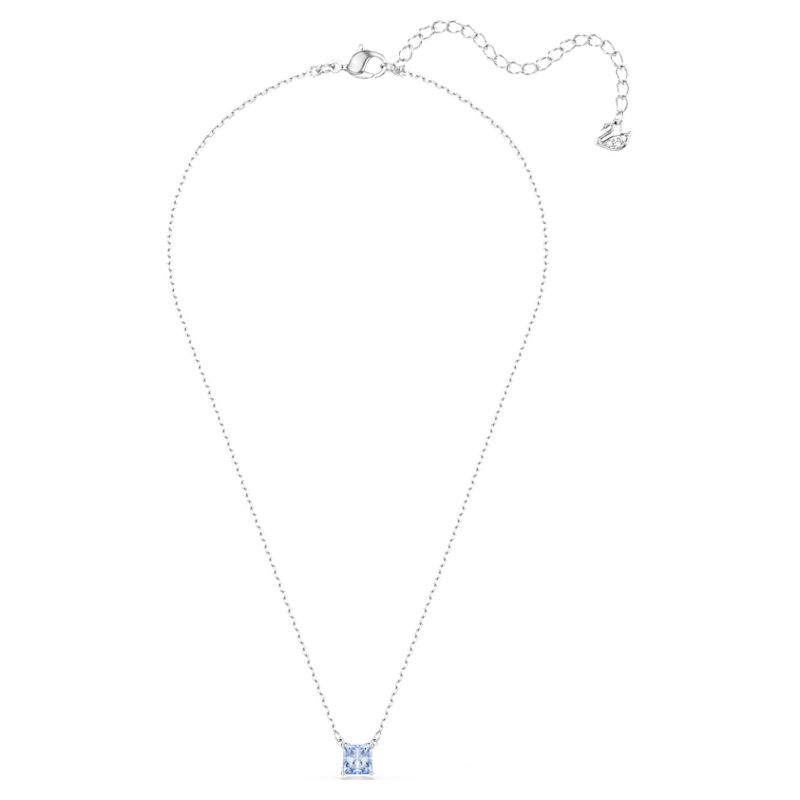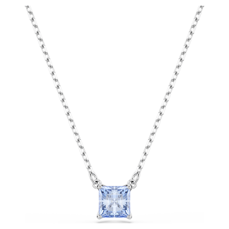 Con la sua intrigante sfumatura di colore blu, questo pendente cattura sempre l’attenzione. Il design placcato rodio presenta una Swarovski Zirconia taglio Square con una raffinata montatura a griffe doppia, mentre la catena allungata è completata da un gancio a moschettone. Indossa questo pendente con un paio di orecchini a lobo abbinati per massimizzare l’eleganza.