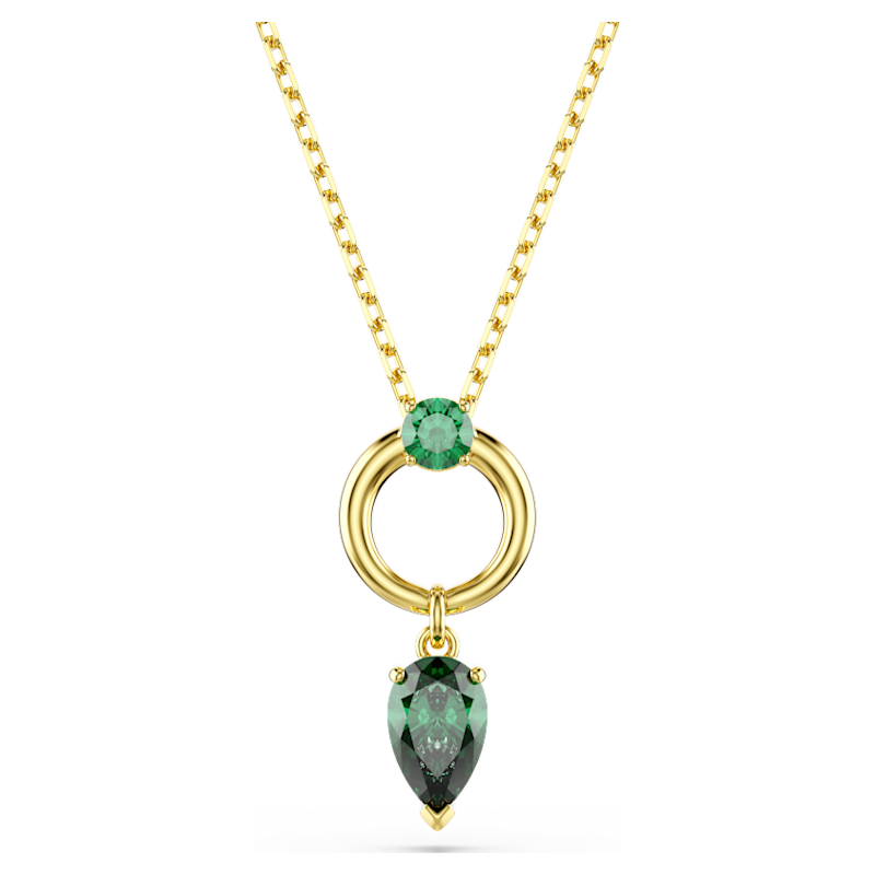 Questo pendente Mesmera fonde il colore con la raffinatezza per creare un affascinante gioiello da indossare tutti i giorni. Il luccicante motivo presenta una Swarovski Zirconia taglio Pear verde, fissata a un lussuoso cerchio placcato in tonalità oro. Al centro è collocata un’ulteriore Swarovski Zirconia taglio Round, mentre un meccanismo scorrevole sulla catena consente di regolare facilmente il pendente alla lunghezza desiderata.
