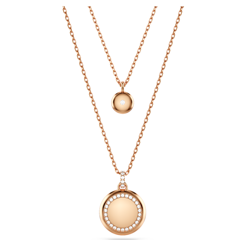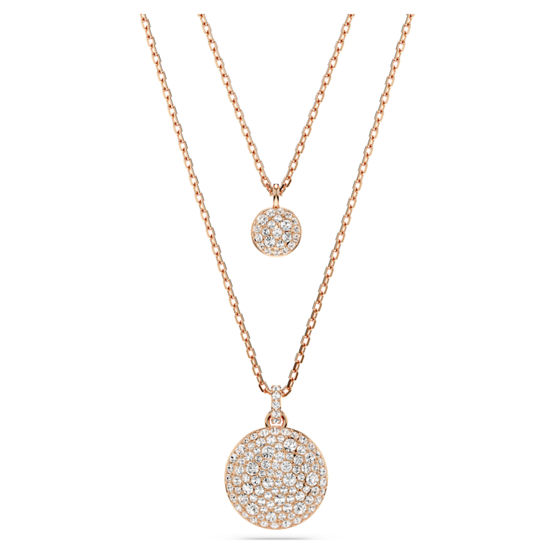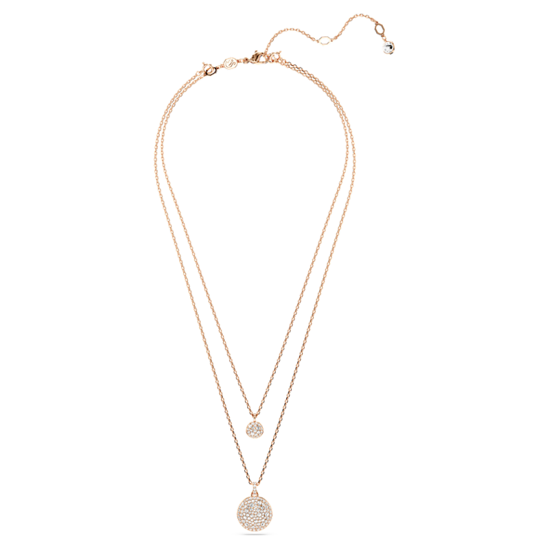 Questo scintillante pendente stratificato è il mezzo ideale per far risplendere il tuo stile di pura luce. Il design placcato color oro rosa presenta due catenine, ciascuna con un motivo a cupola a forma di meteora, splendidamente impreziosito da un pavé a neve di cristalli Cry rotondi di diverse dimensioni. Per un tocco di versatilità in più, il pendente può essere invertito, rivelando un alone di cristalli attorno al motivo più grande ed un singolo cristallo al centro del motivo più piccolo. Un’idea regalo meravigliosa per te o per una persona che ami.