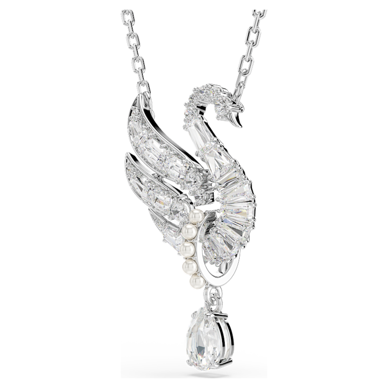 Con una squisita bellezza in ogni dettaglio, questo significativo pendente rende omaggio alle aggraziate qualità dell’iconico cigno Swarovski. Sospeso ad una delicata catena, il motivo centrale è impreziosito da Swarovski Zirconia trasparenti e presenta un singolo taglio Pear che pende da un cerchio in pavé di Crystal Pearls Swarovski. Indossalo insieme agli orecchini coordinati per un look di pura raffinatezza.