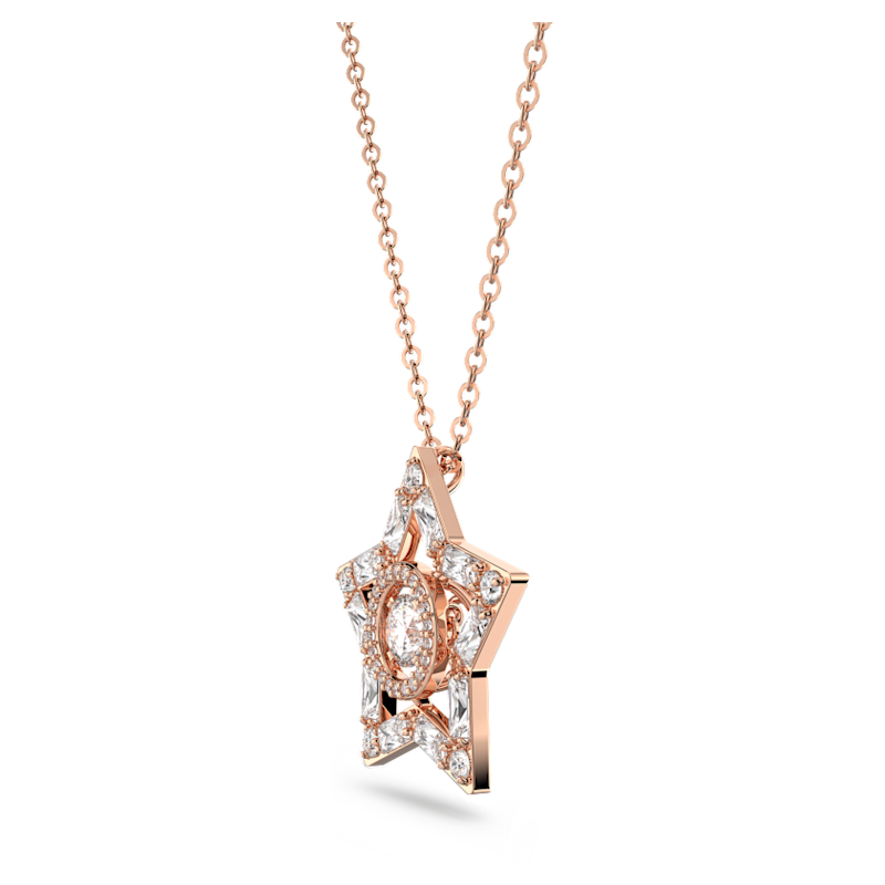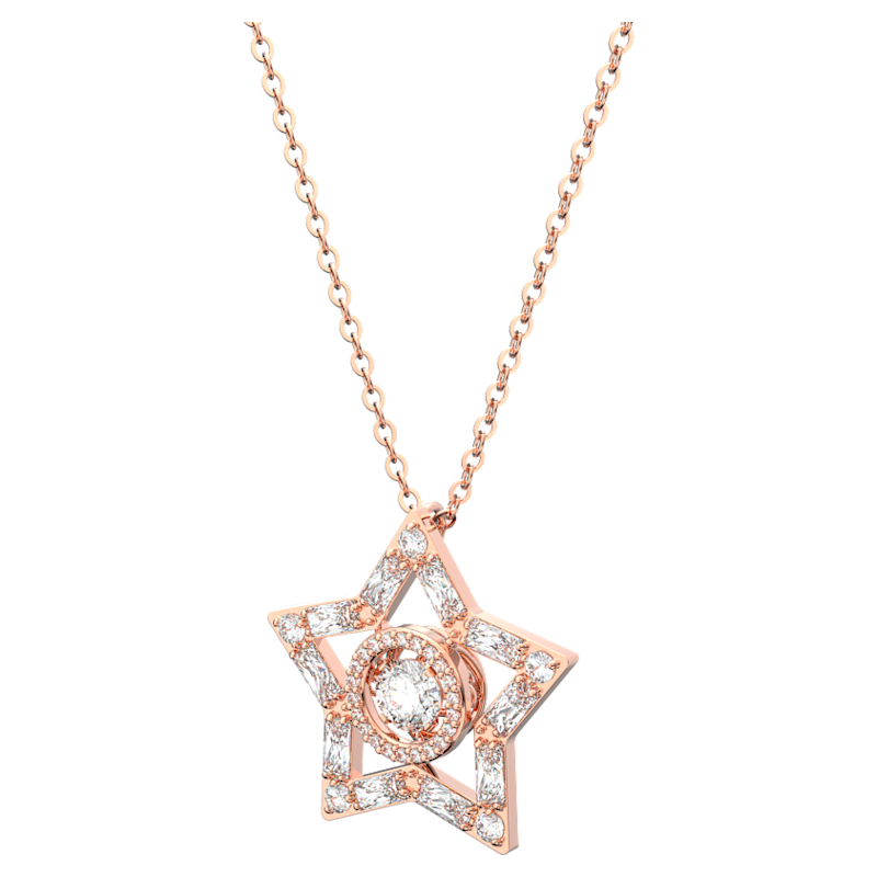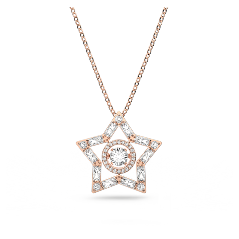 Ispirata alla magia della scena austriaca, la stella è un iconico emblema di Swarovski e forma il motivo centrale di questo delicato pendente. Rifinita con un dettaglio di pietra “danzante”, questa collana placcata oro rosa darà un tocco contemporaneo alla ricca gamma di gioielli Swarovski. Indossala da sola o in abbinamento al bracciale o agli orecchini della famiglia Stella. Parte della famiglia Stella, questo pendente è ideato dalla Direttrice Creativa Giovanna Engelbert per la Collection II.
