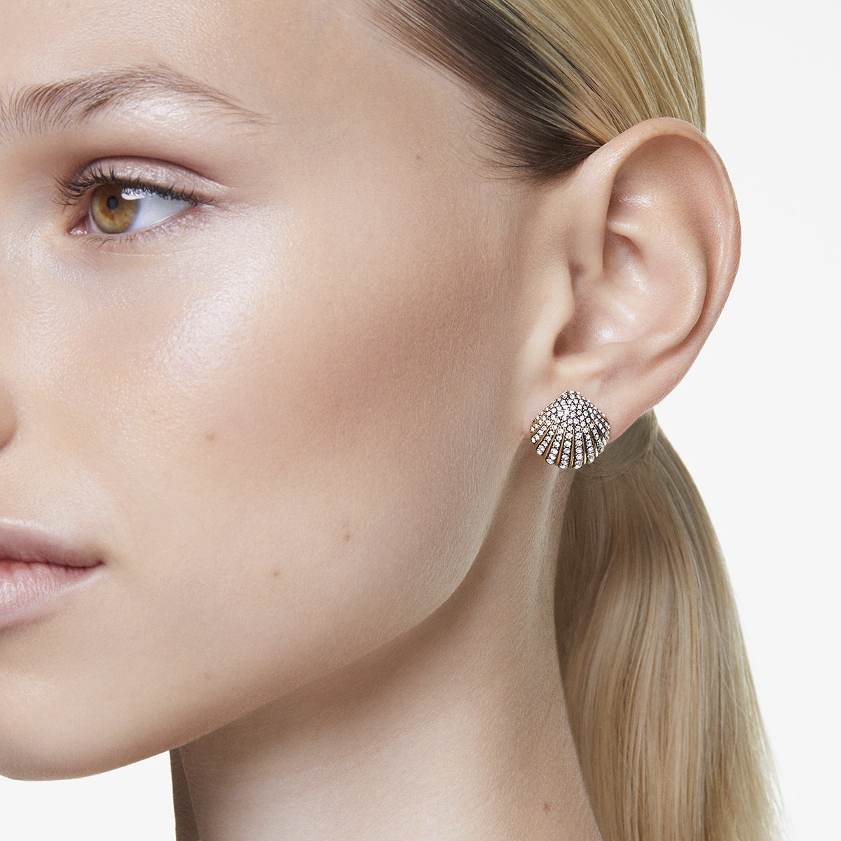Questi delicati orecchini a lobo Idyllia sono ispirati all’oceano e ti conferiranno un tocco perfetto di bellezza naturale. Ogni orecchino placcato color oro presenta un accattivante motivo a forma di conchiglia, artisticamente impreziosito da cristalli Cry rotondi montati su resina epossidica nera. Completati da una chiusura a sfera, sono un modo delicato di esaltare il tuo stile chic per la spiaggia.