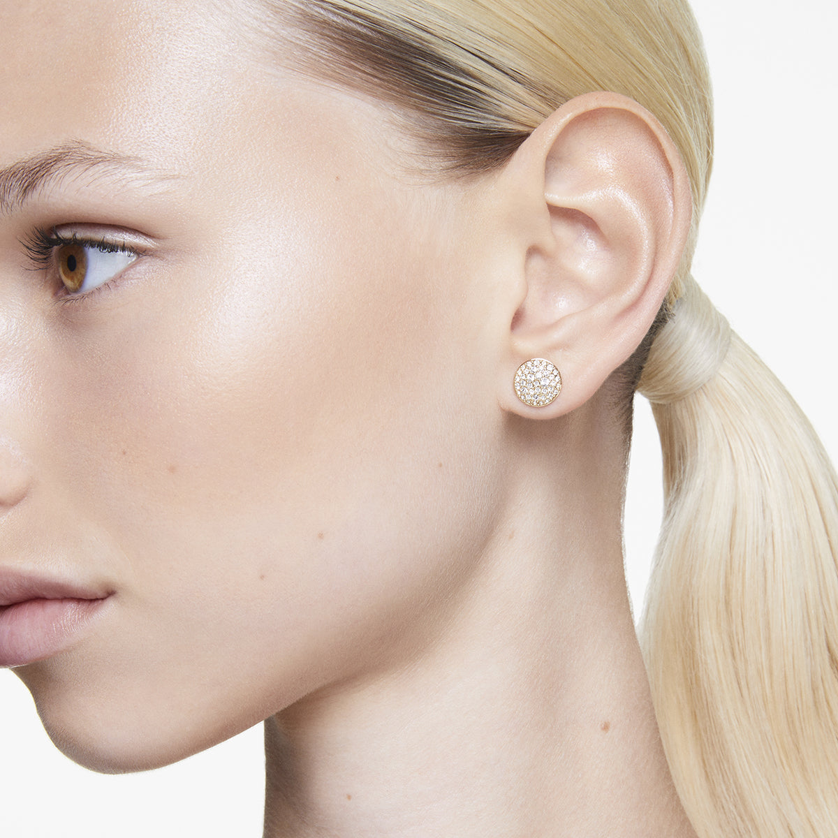 Fai risplendere il tuo stile con questi radiosi orecchini a buco. Ciascun orecchino, ispirato alle galassie, è placcato color oro e presenta un motivo a cupola, a forma di meteora, splendidamente impreziosito da un pavé a neve di cristalli Cry rotondi di diverse dimensioni. Un paio di orecchini a lobo che cattureranno tutti gli sguardi in ogni momento del giorno o della sera.