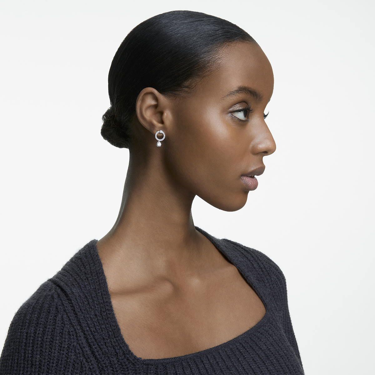 Questo paio di orecchini a buco Swarovski è semplice ma sempre brillante. Una pietra bianca rotonda ricade da un piccolo cerchio, splendidamente decorato con scintillante pavé. Gli elementi pendenti danzano ad ogni movimento del tuo capo, riflettendo la luce in modi sempre nuovi e assolutamente brillanti. Questi accattivanti orecchini aggiungono un tocco di inimitabile scintillio agli outfit da tutti i giorni.