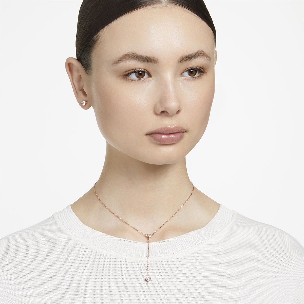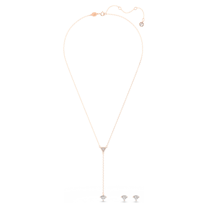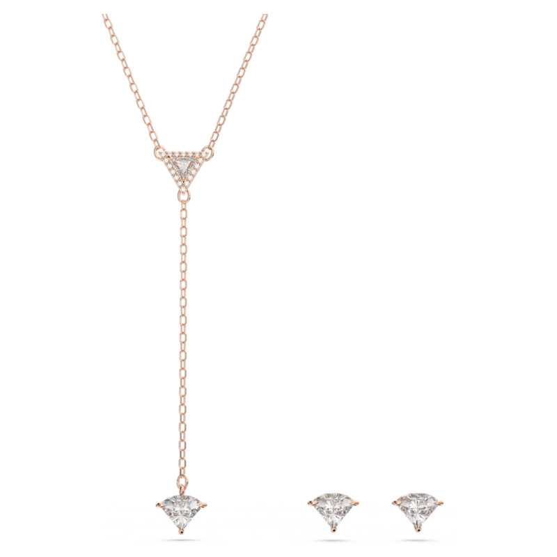Esprimi la tua personalità con questo allegro set di ispirazione punk della linea Stilla. Comprende una collana a Y e orecchini a lobo, caratterizzati da pietre dal taglio triangle incastonate a mano, circondate da uno sfavillante pavé. Cogliendo il punto d'equilibrio tra originalità e raffinatezza, è rifinito da una placcatura in tonalità oro rosa. Indossandoli, ti si aprirà un mondo.