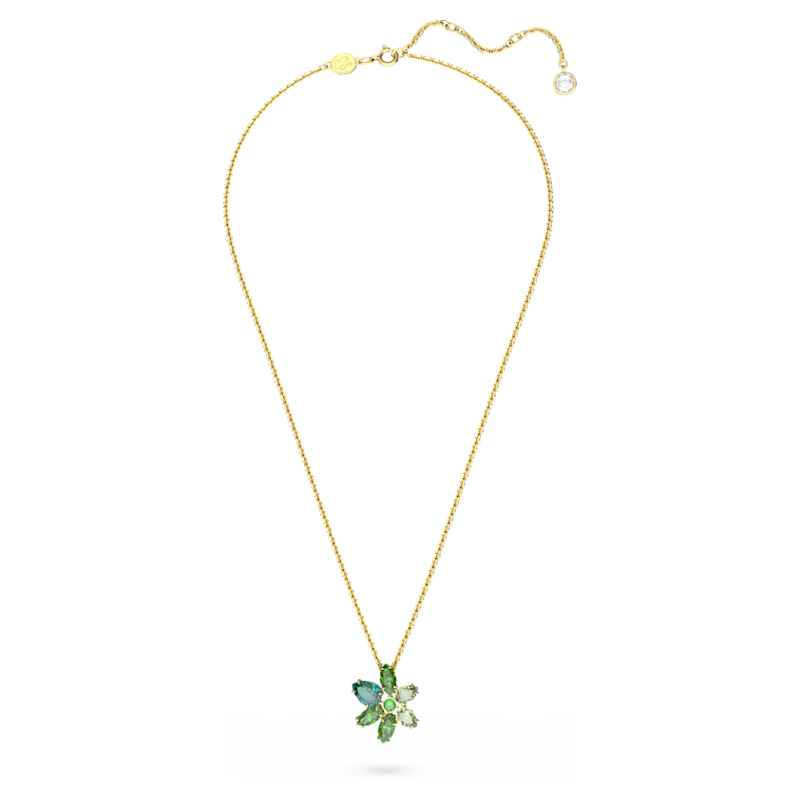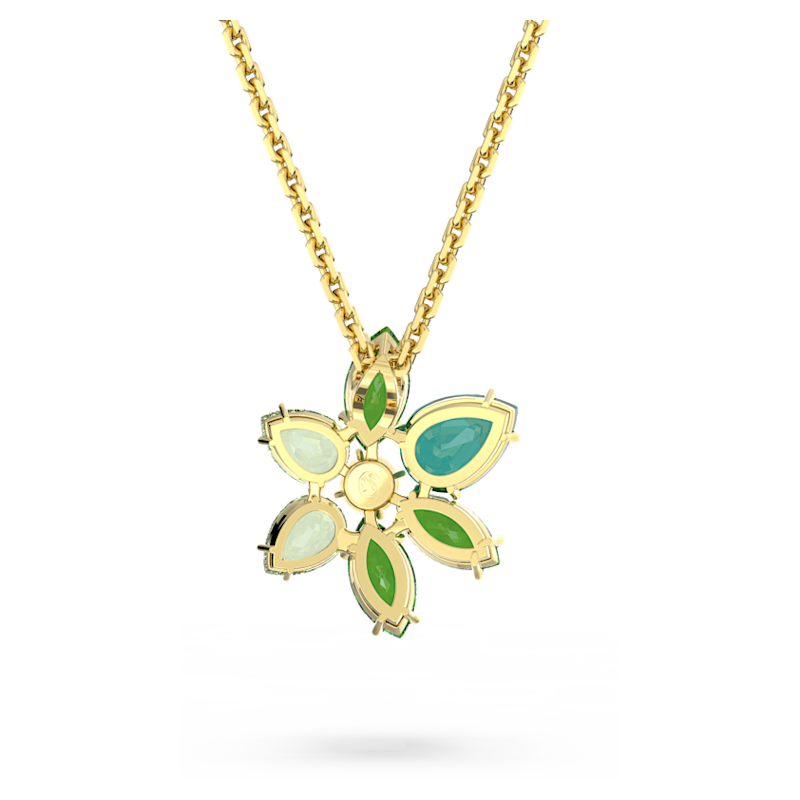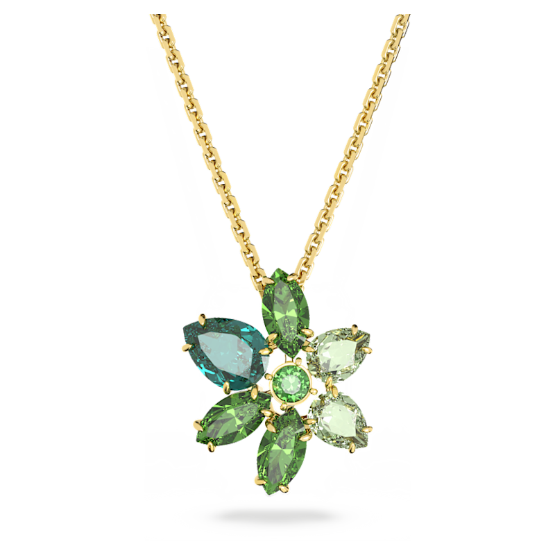 Pendente Gema, Taglio misto, Fiore, Verde, Placcato color oro - Fabiani Gioiellerie