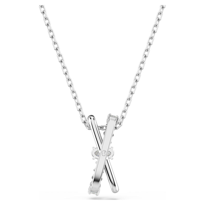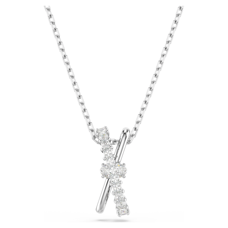 Uno straordinario esempio del savoir-faire di Swarovski, questo accattivante pendente Hyperbola prende forma da due fasce placcate rodio, con un lato impreziosito da Swarovski Zirconia trasparenti con montatura a griffe. Per la massima radiosità, al centro troneggia un’unica Swarovski Zirconia taglio Oval. Una sublime creazione, perfetta da abbinare ad un bangle coordinato.