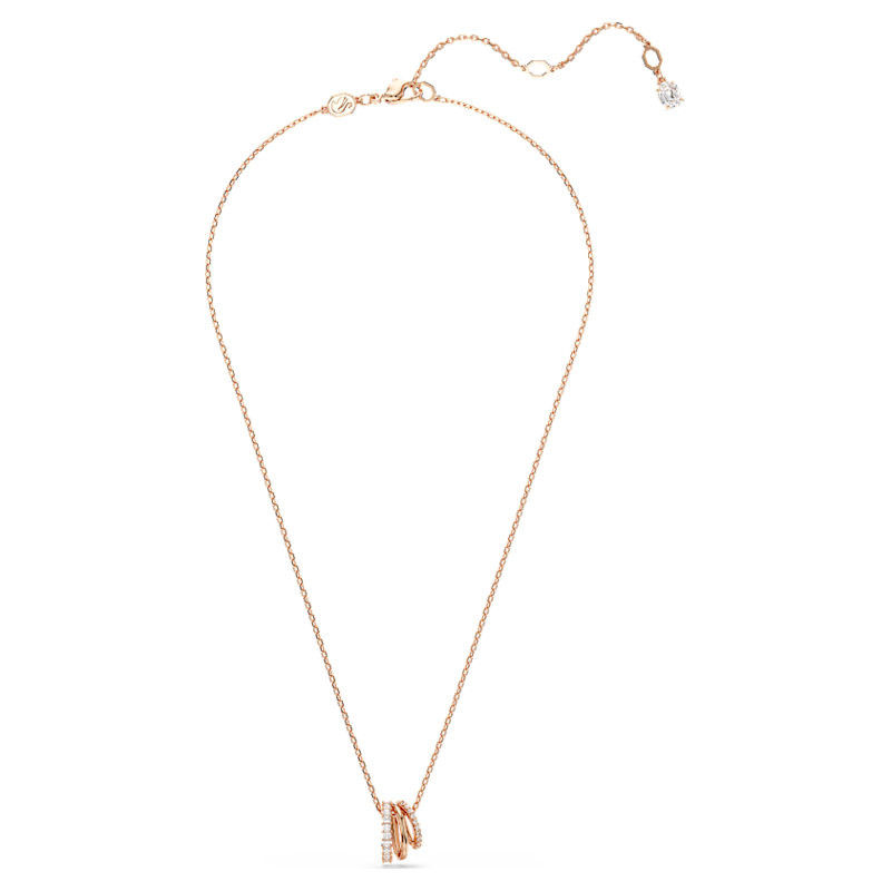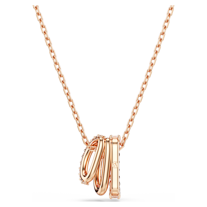 Sono i dettagli a definire questo squisito pendente Hyperbola. Sospeso su una delicata catenina, il gioiello presenta tre mini-cerchi in tonalità oro rosa, impreziositi da Swarovski Zirconia dai tagli Round e Square con montatura a griffe. Abbinalo a metalli misti per ribaltare con eleganza le convenzioni.