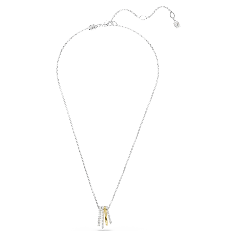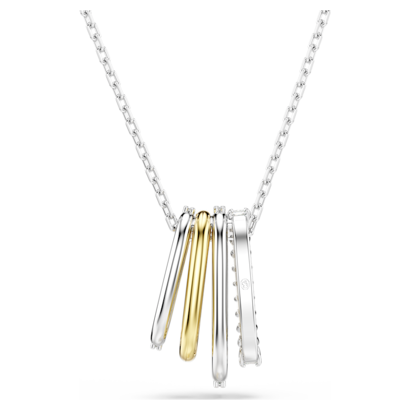 Questo accattivante pendente Hyperbola fonde insieme più tonalità e tecniche per creare una distintiva interpretazione del lusso raffinato. Fissati a un’elegante catena, i quattro mini cerchi presentano una placcatura color oro e rodio, impreziositi da Swarovski Zirconia taglio Round e Square con montatura a griffe. Abbinali ad un bangle o orecchini coordinati per il massimo glamour.