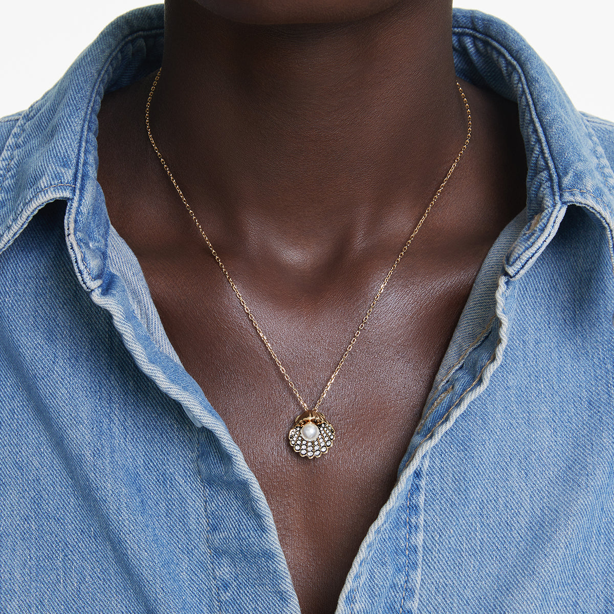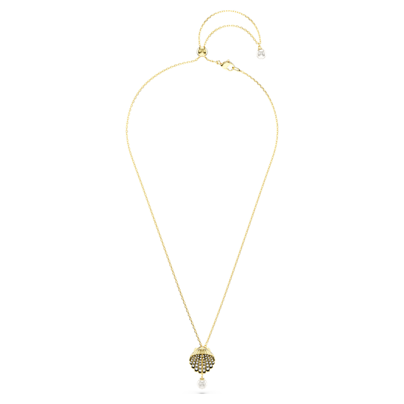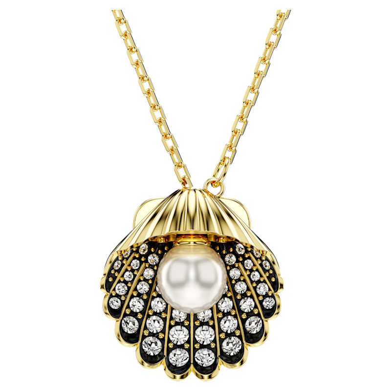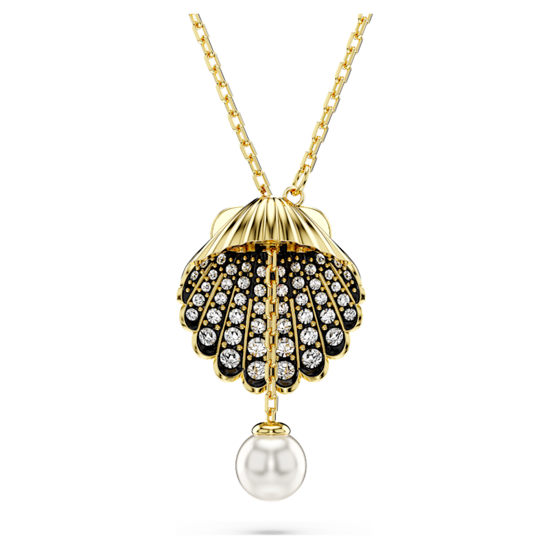 Catturando la serenità e la bellezza dell’oceano, questo pendente Idyllia saprà aggiungere un tocco d’ispirazione marina al tuo stile. La creazione placcata color oro si indossa su una delicata collana e presenta un motivo a forma di conchiglia al suo centro. Artisticamente impreziosita da cristalli Cry rotondi in una montatura nera, al suo interno è posizionata una singola Crystal Pearl. Per una maggiore versatilità, la perla può anche essere estratta dalla conchiglia, trasformando in modello in un design a Y. Un modo semplice e accattivante per sentirsi tutt’uno con il mare.