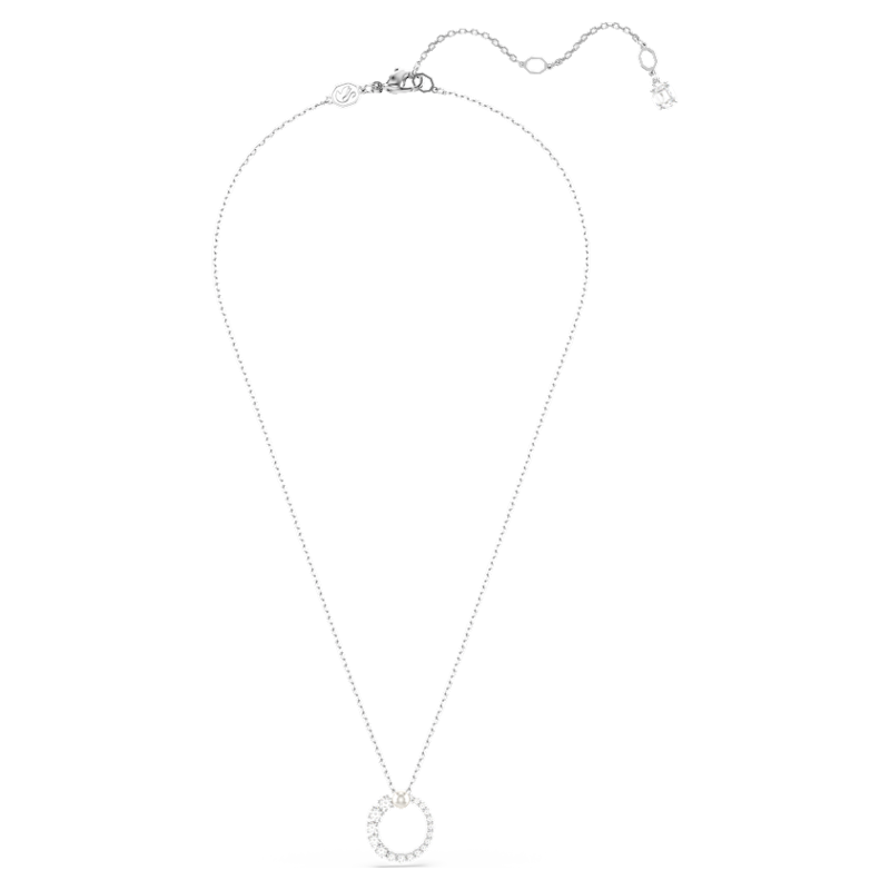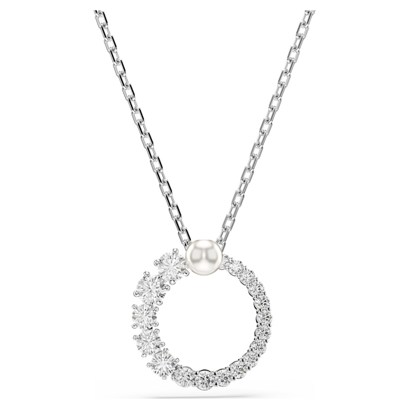 Con la sua classica silhouette e i dettagli contemporanei, questo elegante pendente Matrix attirerà su di sé ogni sguardo. Sospesa su una delicata catena, la creazione placcata rodio presenta un anello di Swarovski Zirconia trasparenti, di misure che variano da piccole a grandi, ed è terminato da una Crystal Pearl Swarovski bianca al centro. Indossalo da solo o abbinalo a orecchini coordinati per un’intensità a tutto volume.
