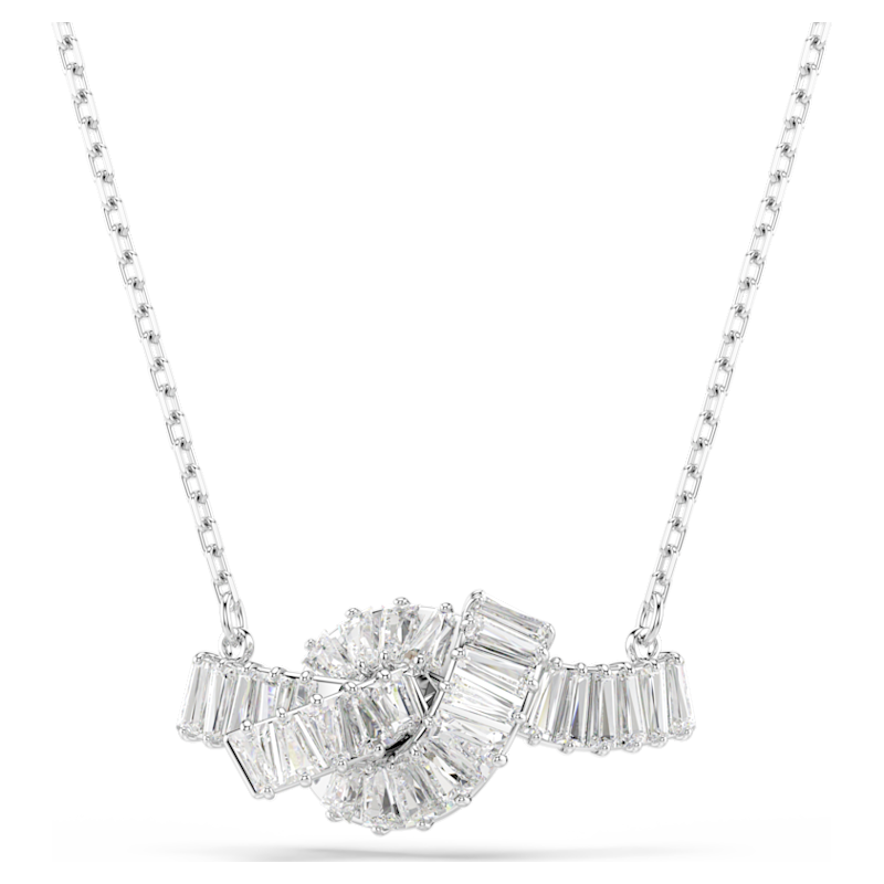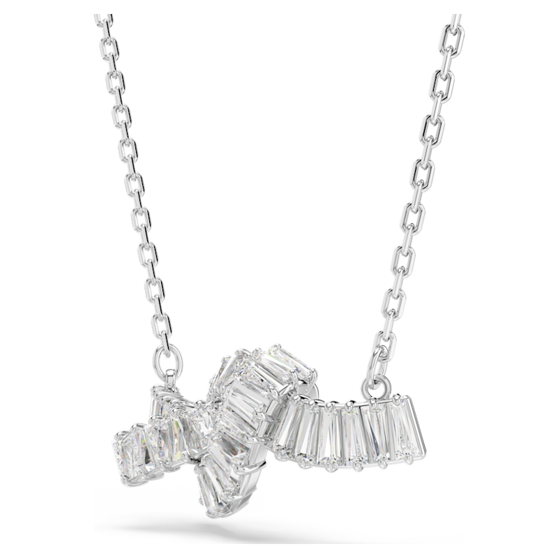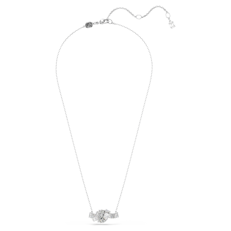Questo elegante pendente Swarovski è annodato per simboleggiare un legame eterno. Sospeso su una delicata catena, il motivo ispirato a un nastro è placcato rodio e presenta una sofisticata decorazione di Swarovski Zirconia taglio Baguette, ciascuna con montatura a griffe. È un sofisticato gioiello da tutti i giorni che si abbina splendidamente alle altre creazioni Matrix.