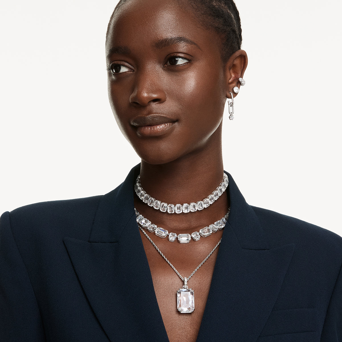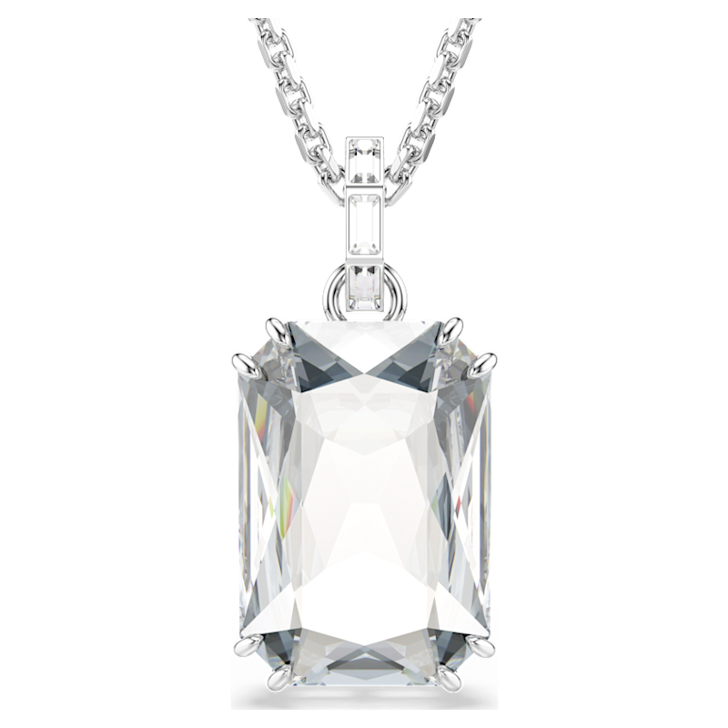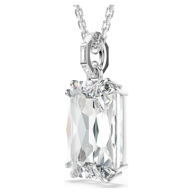 Con l’emblematico stile Millenia, questo luminoso pendente è una pura creazione di luce. Il motivo centrale è realizzato con un grande cristallo Cry in una doppia montatura a griffe e si collega alla catena placcata rodio tramite un elegante passante impreziosito da cristalli montati a binario. Una scelta affascinante per amplificare la tua luce quotidiana.
