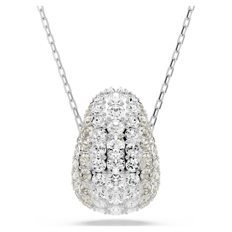 Squisito esempio di savoir-faire Swarovski, questo pendente Sublima sarà un forte elemento centrale per qualsiasi outfit. Sospeso su un’elegante catenina, il motivo placcato rodio presenta una base in metallo bombata per un maggior volume, rivestita da un pavé di cristalli Cry. Il motivo Meteora, composto da cristalli di diverse misure, affascina con il suo splendore. Indossalo insieme a creazioni Sublima simili per creare onde di stile.