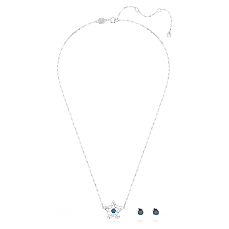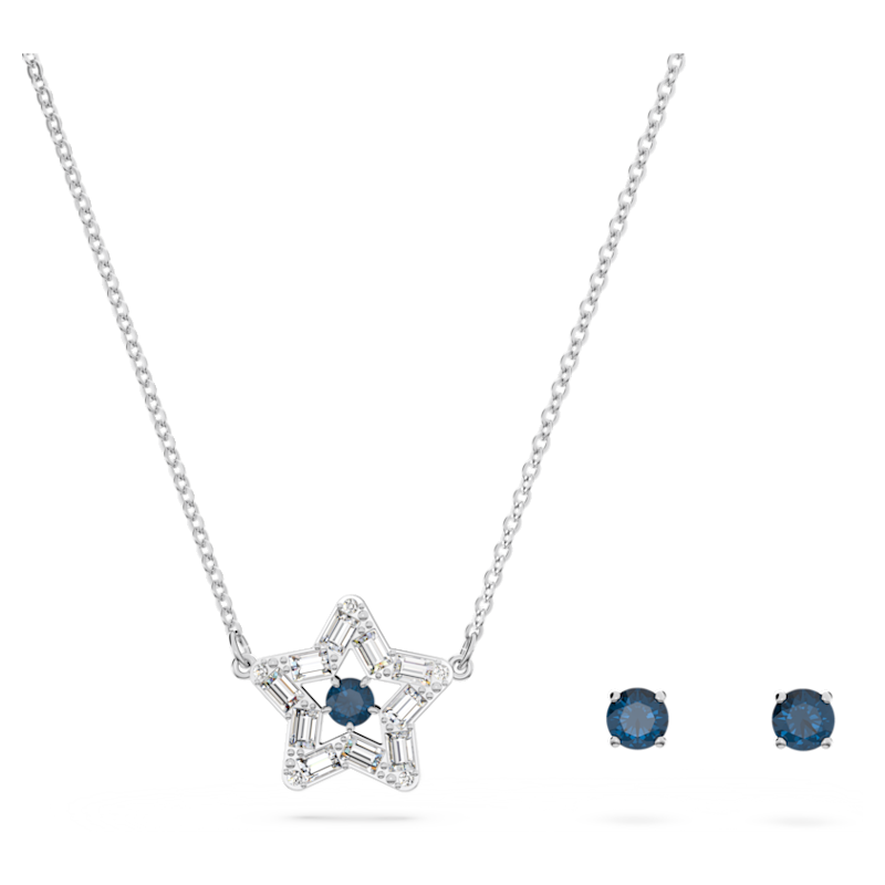 Preparati a incantare con questo irresistibile set di gioielli della linea Stella. Lo scintillante pendente a stella sfoggia cristalli taglio baguette contemporanei, che circondano una pietra centrale blu. Gli orecchini coordinati risplendono luminosi in una corrispondente tonalità di blu. Perché non regalarteli oppure farne dono ad una persona cara?
