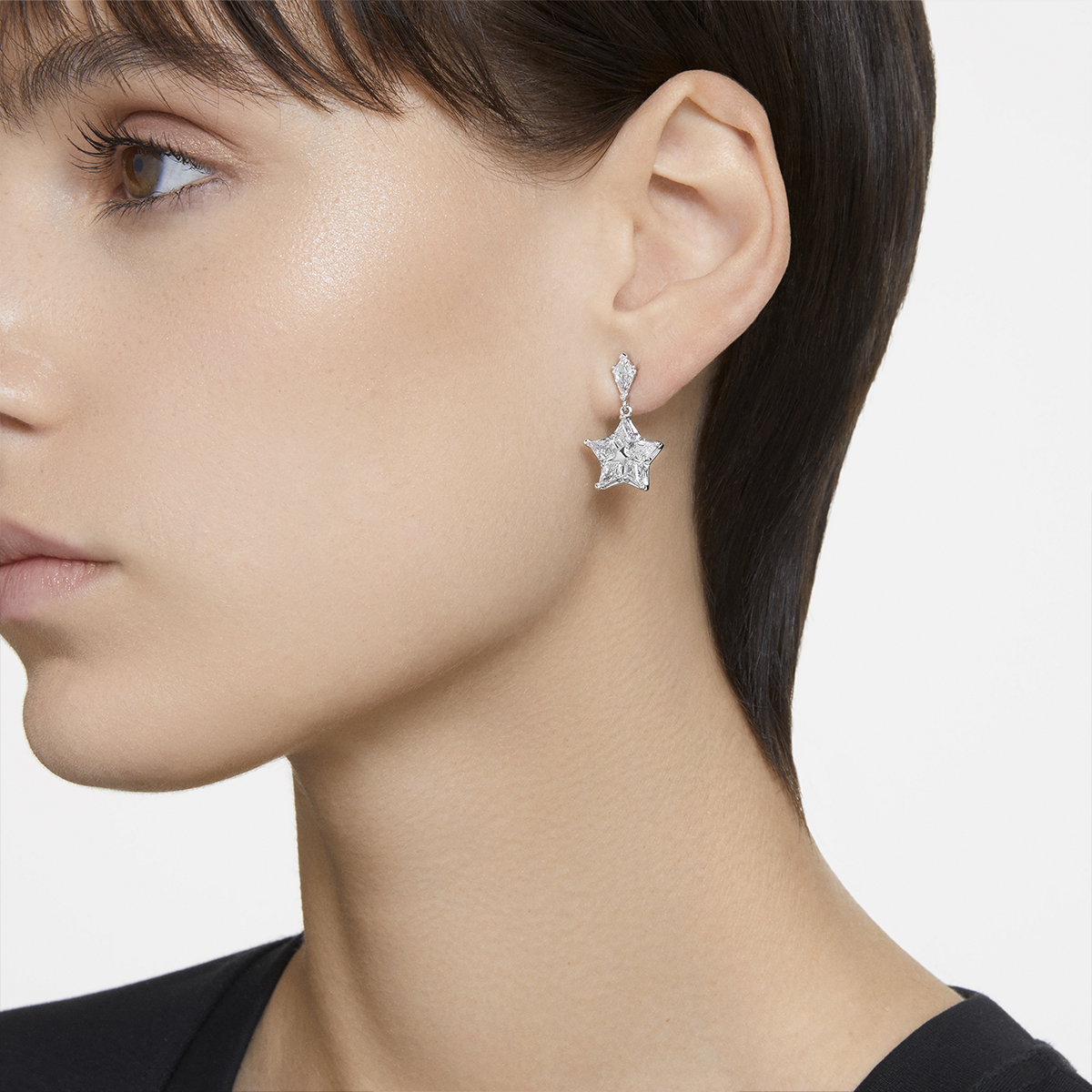Ignite your dreams, accendi i tuoi sogni con questi magici orecchini della famiglia Stella. Il motivo centrale a stella, appeso a una pietra tagliata a forma di aquilone, è sapientemente realizzato con un mix di pietre trasparenti incastonate in una placcatura in rodio. Aumenta il livello di glamour con altri gioielli di questa collezione costellata di stelle.