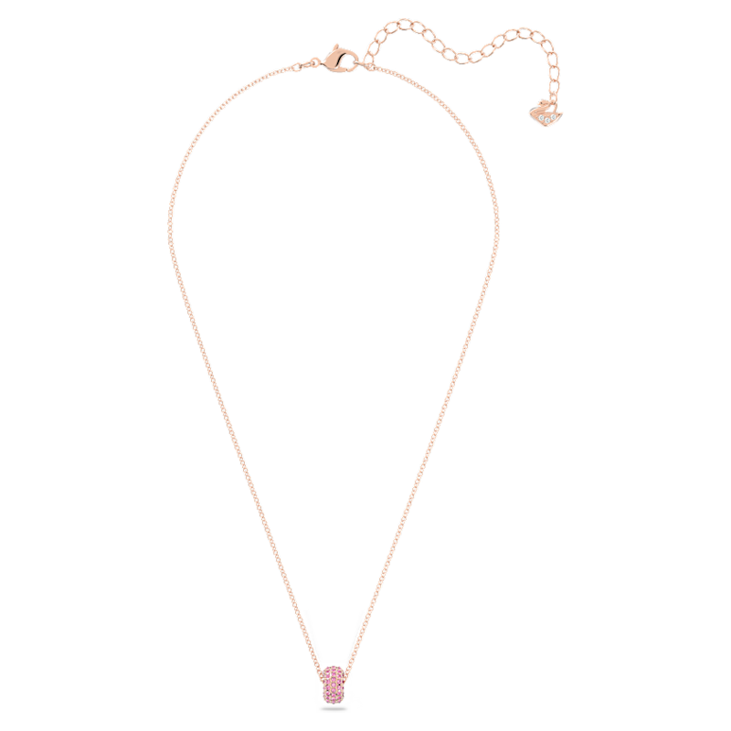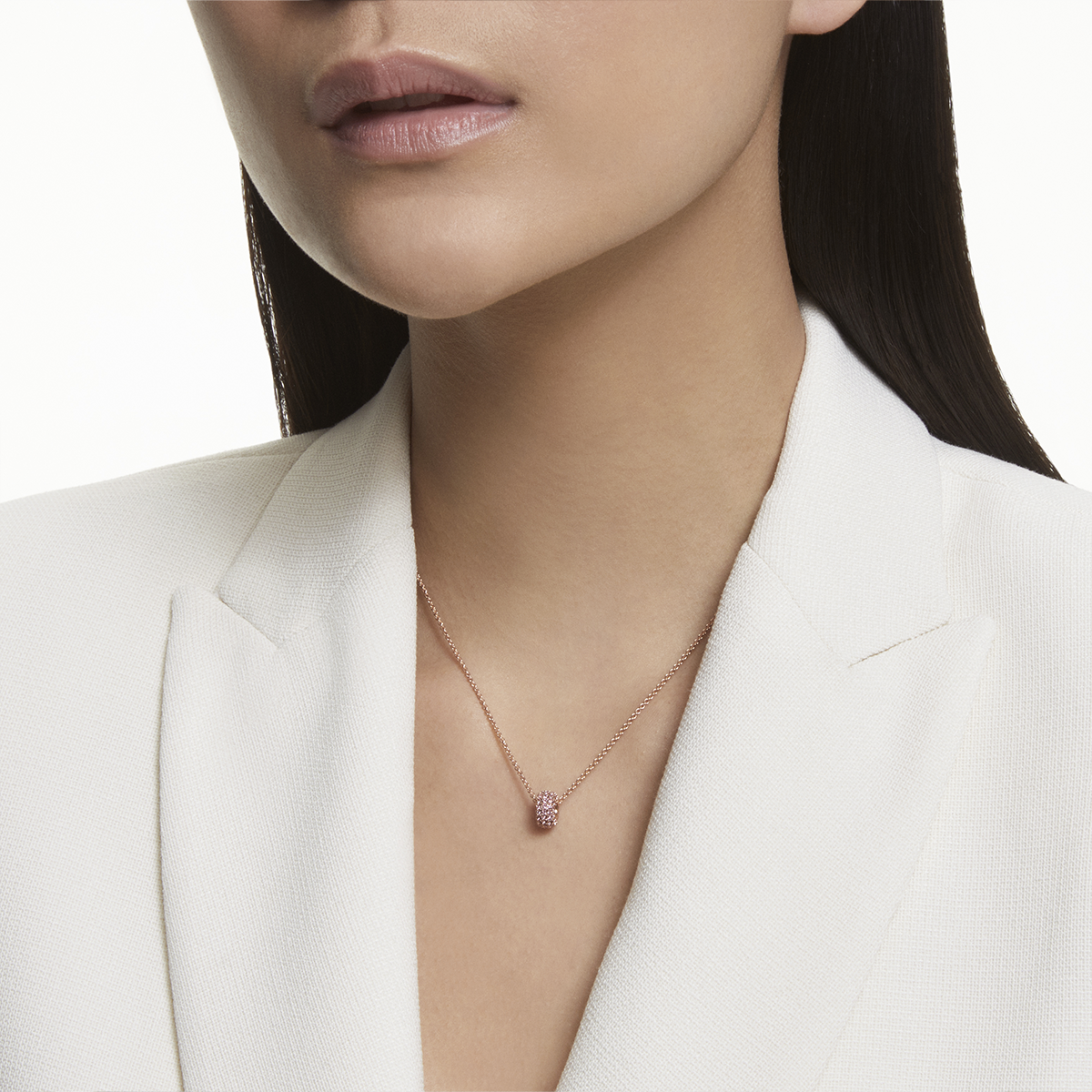 La bellezza sta nella semplicità di questo elegante pendente. Brilla con un pavé rosa tenue illuminato da una catena placcata color oro rosa. Un gioiello perfetto per abbinamenti casual o eleganti.