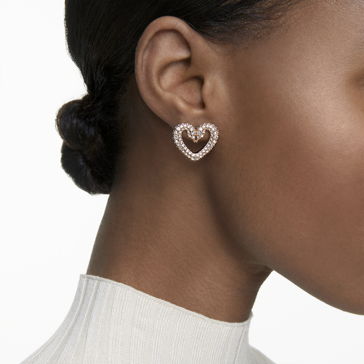 Questi orecchini a buco, ideali da indossare ogni giorno, rappresentano la nuova direzione intrapresa dall’iconico emblema del cigno Swarovski. Questo paio a forma di cuore, placcato in tonalità oro rosa è pensato per scatenare l’immaginazione con gli sfavillanti cristalli pavé. Il regalo ideale per una persona amata, o magari per te. Parte della famiglia Sublima, questi orecchini sono ideati per la Collection III.