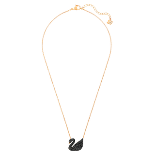 Pendente Swan, Cigno, Nero, Placcato color oro rosa