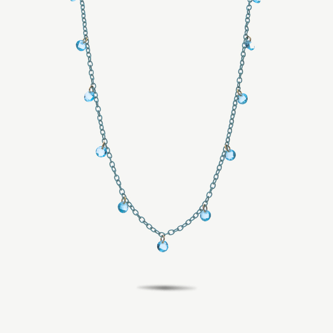 Una collana in argento 925 con cristalli azzurri che unisce stile moderno e delicatezza, ideale per chi desidera un gioiello raffinato ma dal carattere vivace e contemporaneo.