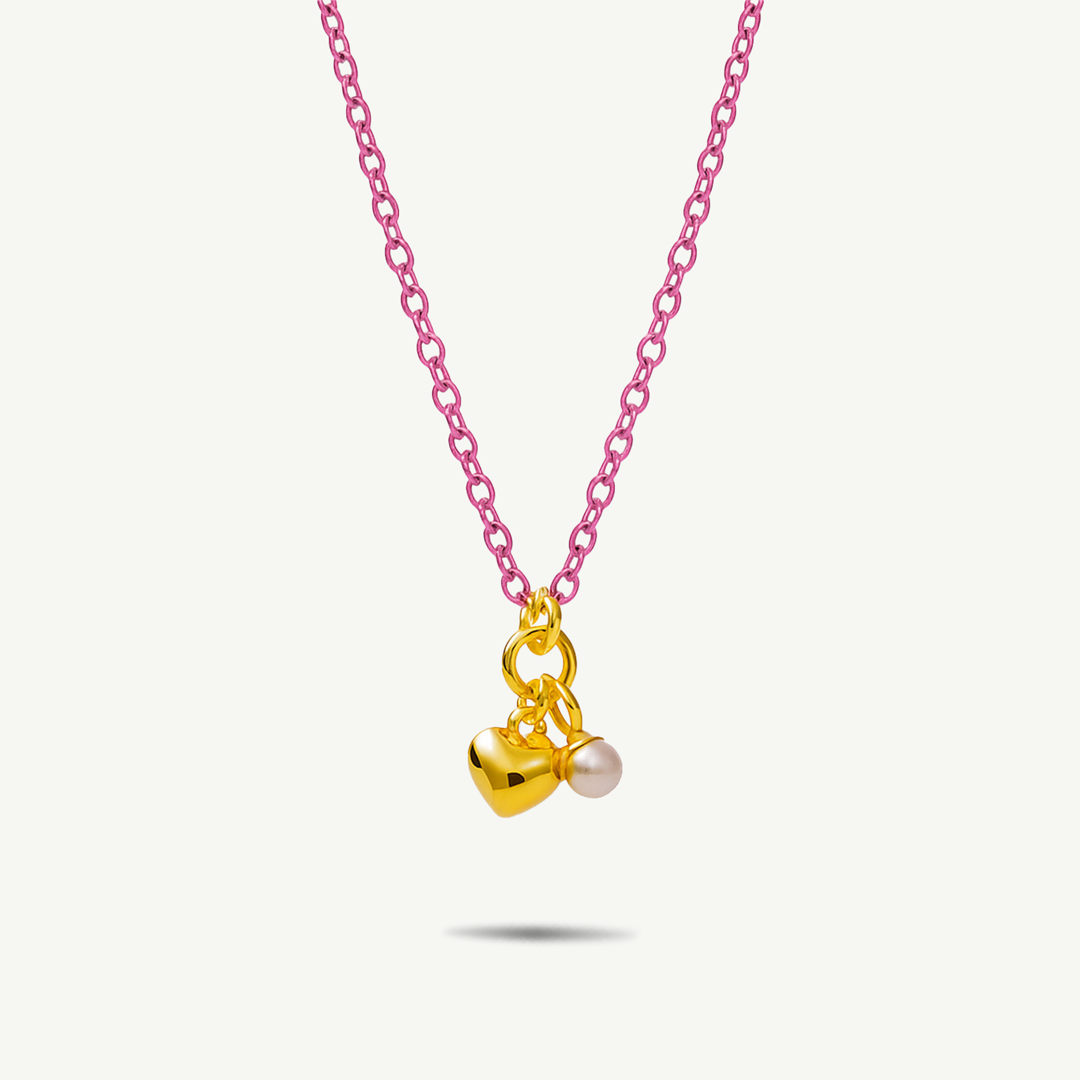 Questa collana Fabiani in argento 925 è un gioiello moderno e originale che unisce design e significato. La catena, smaltata rosa, dona un tocco fresco e contemporaneo, mentre i due charm pendenti aggiungono personalità e dolcezza: un cuore dorato di circa 6 mm e una perlina bianca di circa 4 mm.
