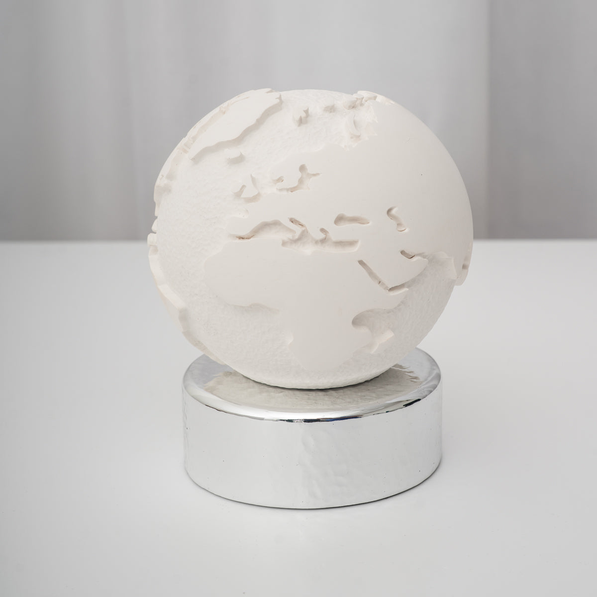 Il mappamondo bianco argentato Meridien è un elegante oggetto decorativo che unisce design moderno e significato simbolico. La sfera bianca, poggiata su una base argentata lucida, rappresenta la connessione tra i popoli e l’universalità della bellezza, rendendolo un elemento d’arredo raffinato e contemporaneo.