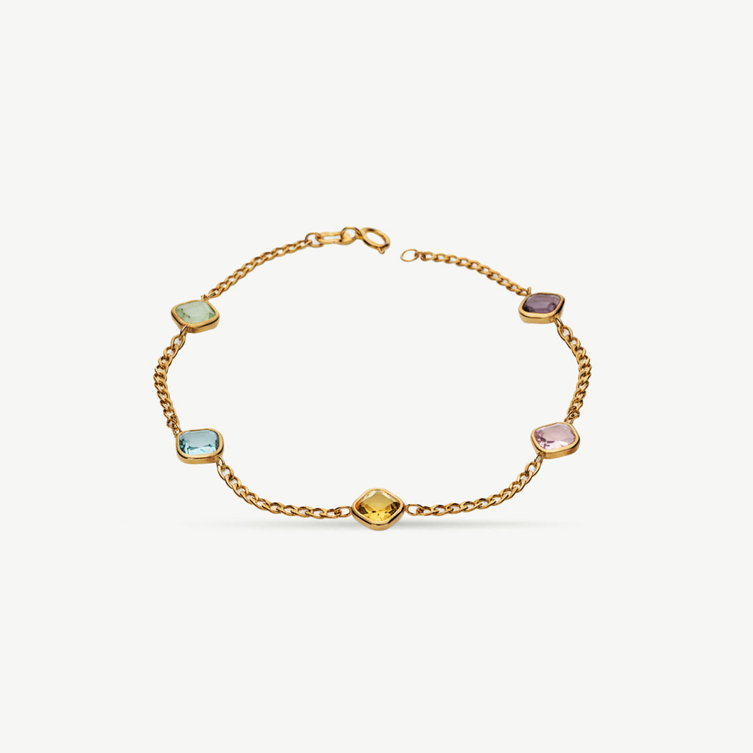 Il Bracciale Fabiani in oro giallo 9Kt unisce eleganza e colore in un design moderno e luminoso. La maglia rolò valorizza ogni movimento, mentre gli zirconi quadrati multicolor aggiungono un tocco vivace e raffinato, ideale per chi ama distinguersi con stile.