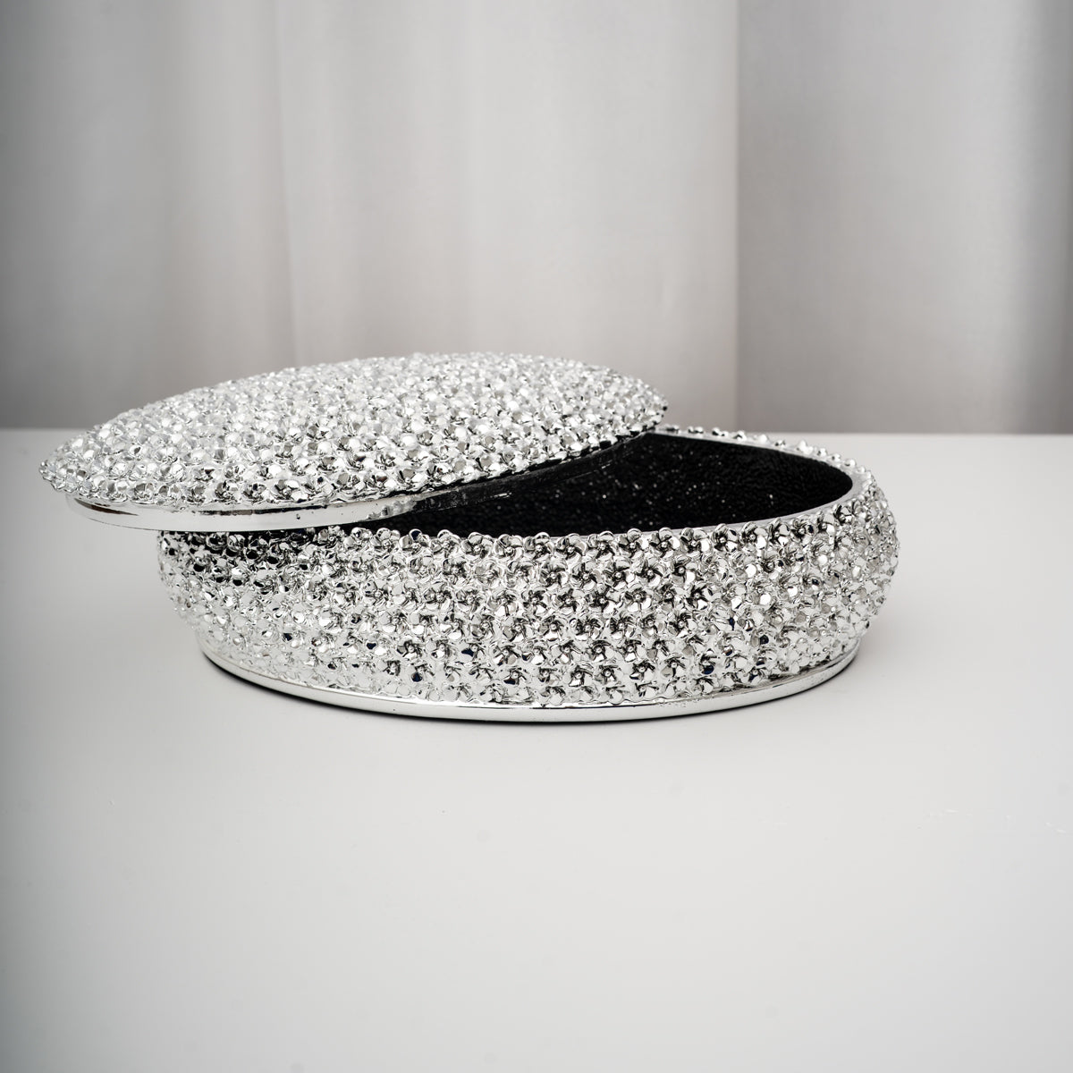 La scatola rotonda argentata con coperchio Meridien è un oggetto decorativo elegante e luminoso, perfetto per aggiungere un tocco di raffinatezza e brillantezza a qualsiasi ambiente. Il suo design rotondo e la superficie scintillante catturano la luce, rendendola un vero elemento di stile per salotti, camere da letto o spazi moderni.