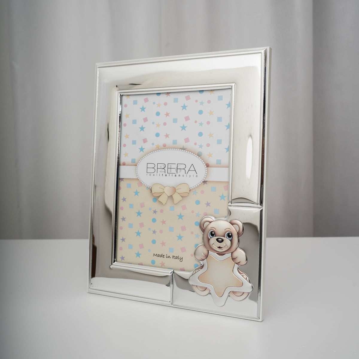 La cornice portafoto 13x18 Meridien con dolce decorazione a forma di orsetto è un raffinato complemento pensato per custodire i ricordi più preziosi dell’infanzia. Il profilo argentato lucido riflette la luce con eleganza, mentre il tenero orsetto smaltato dona un tocco di dolcezza e calore, perfetto per camerette e spazi dedicati ai più piccoli.