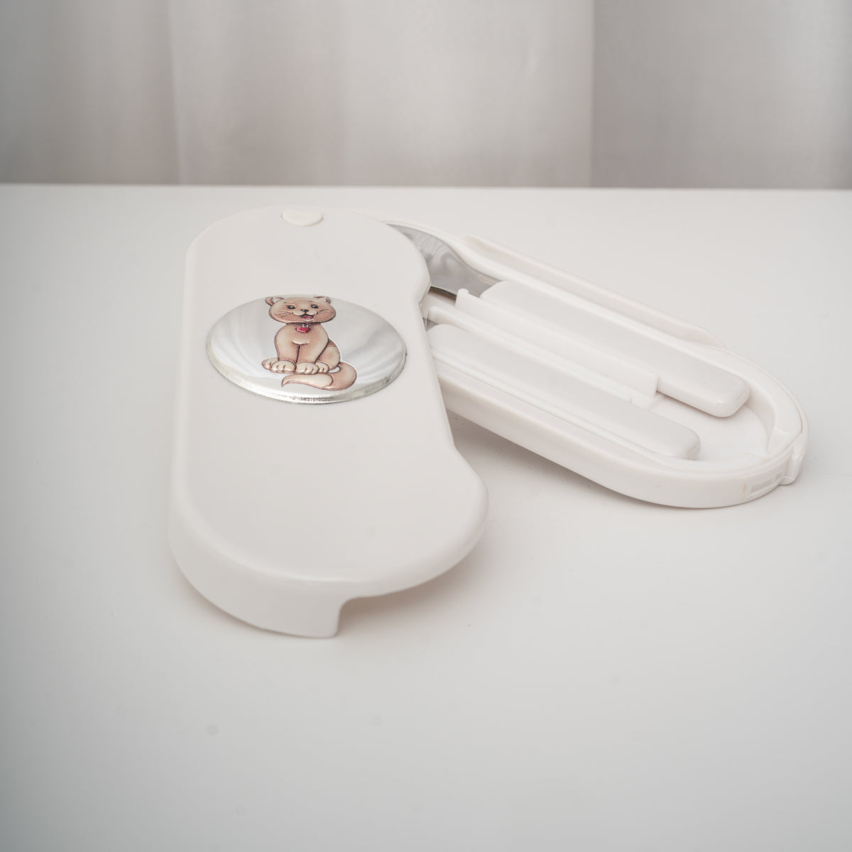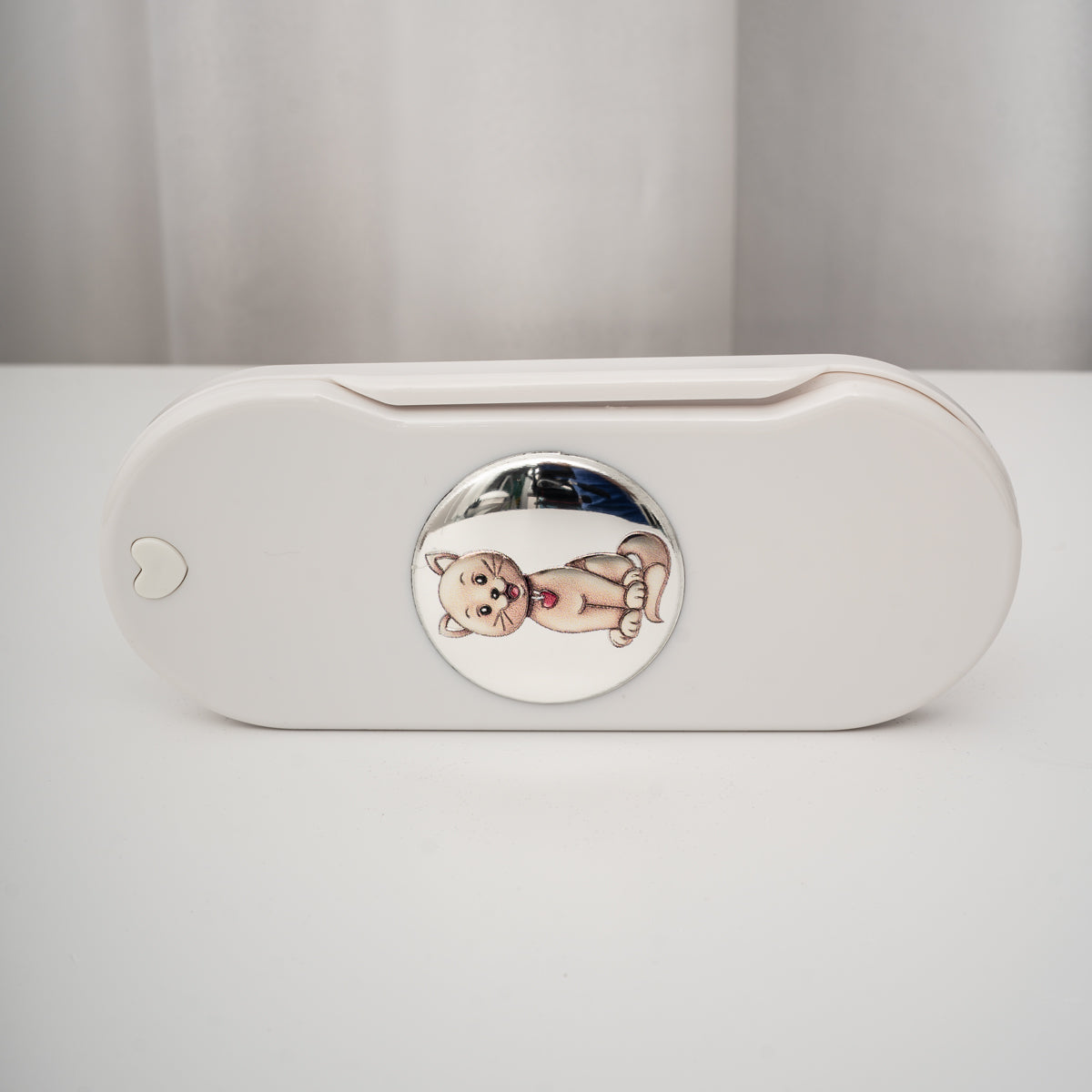 Il portaposate gatto rosa Meridien è un accessorio pensato per rendere speciali i primi momenti a tavola dei più piccoli. Il tenero disegno del gattino, simbolo di dolcezza e allegria, impreziosisce l’astuccio con un tocco delicato e raffinato, perfetto per un regalo di nascita o battesimo.