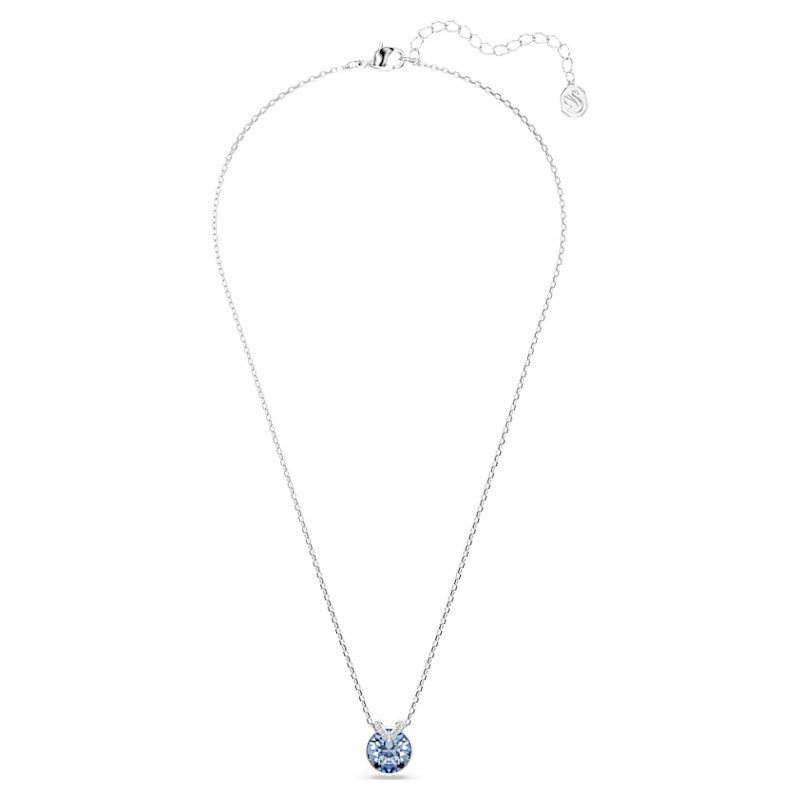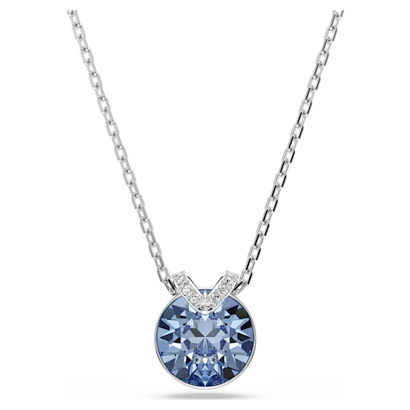 Questo radioso pendente a V ha un fascino accattivante grazie al suo cristallo azzurro centrale incastonato nella placcatura rodio. Un tocco di scintillante pavé aggiunge ulteriore bellezza, mentre la delicata catena emana pura eleganza. Indossalo insieme agli orecchini coordinati per una combinazione meravigliosa.